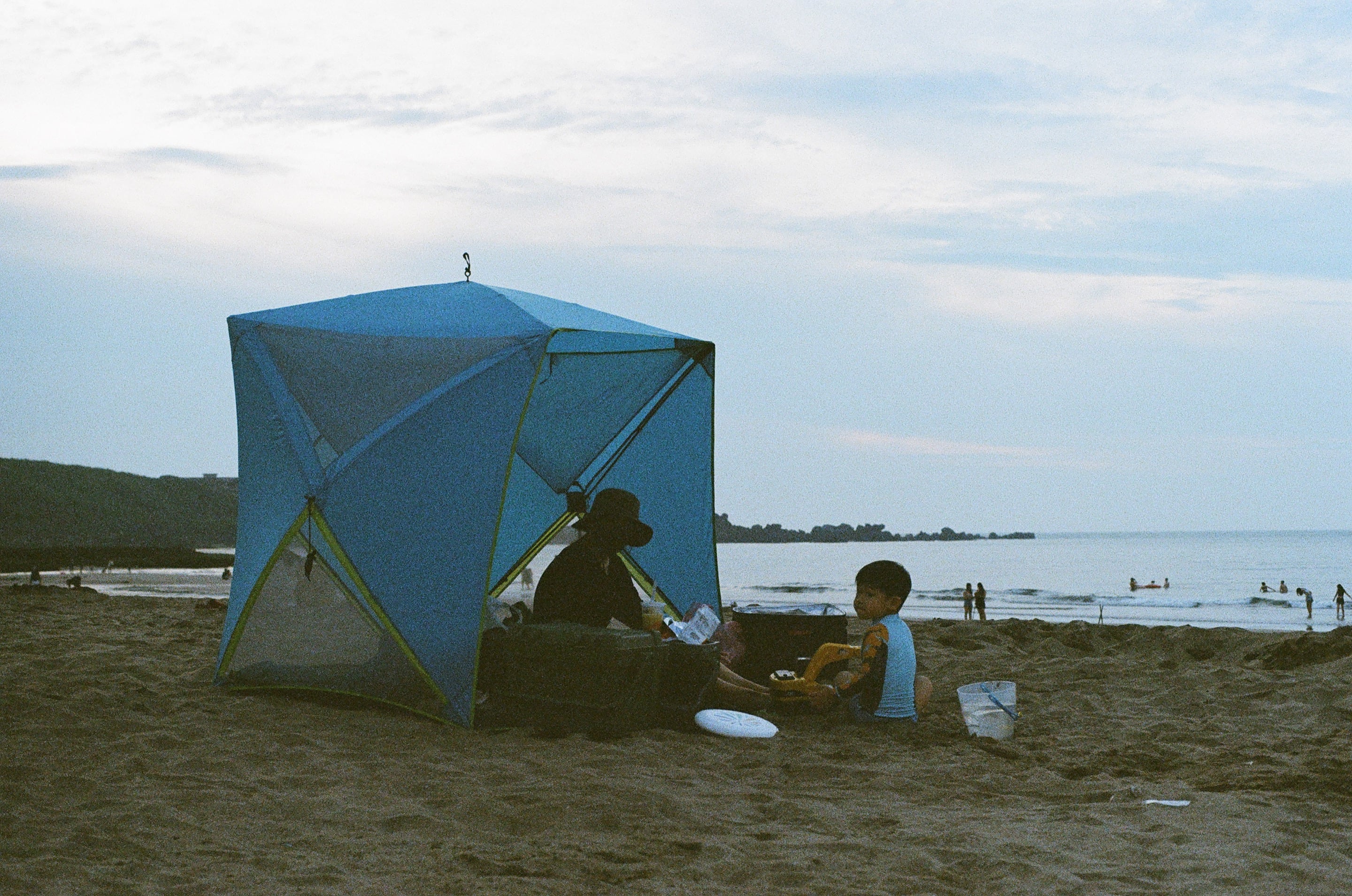 這是我第一次嘗試使用感光度 400 的底片,雖然曝光可以多一級,但對於有大光圈鏡頭可以用的我,老實說幫助不大,反而我在日光下總是擔心過度曝光。這卷底片可以分成「去海邊時」和「去海邊後」,很遺憾地在去海邊時,我都還不知道原來我的 OM-1 測光有問題,在去了海邊之後,某個晚上我才發現原來是電池在搞鬼,換了正確規格電池之後才解決了測光的問題,沒能如實捕捉到兒子第一次享受海浪的興奮表情雖然有些遺憾,但是好險我當時有帶著 iPhone 錄影。
