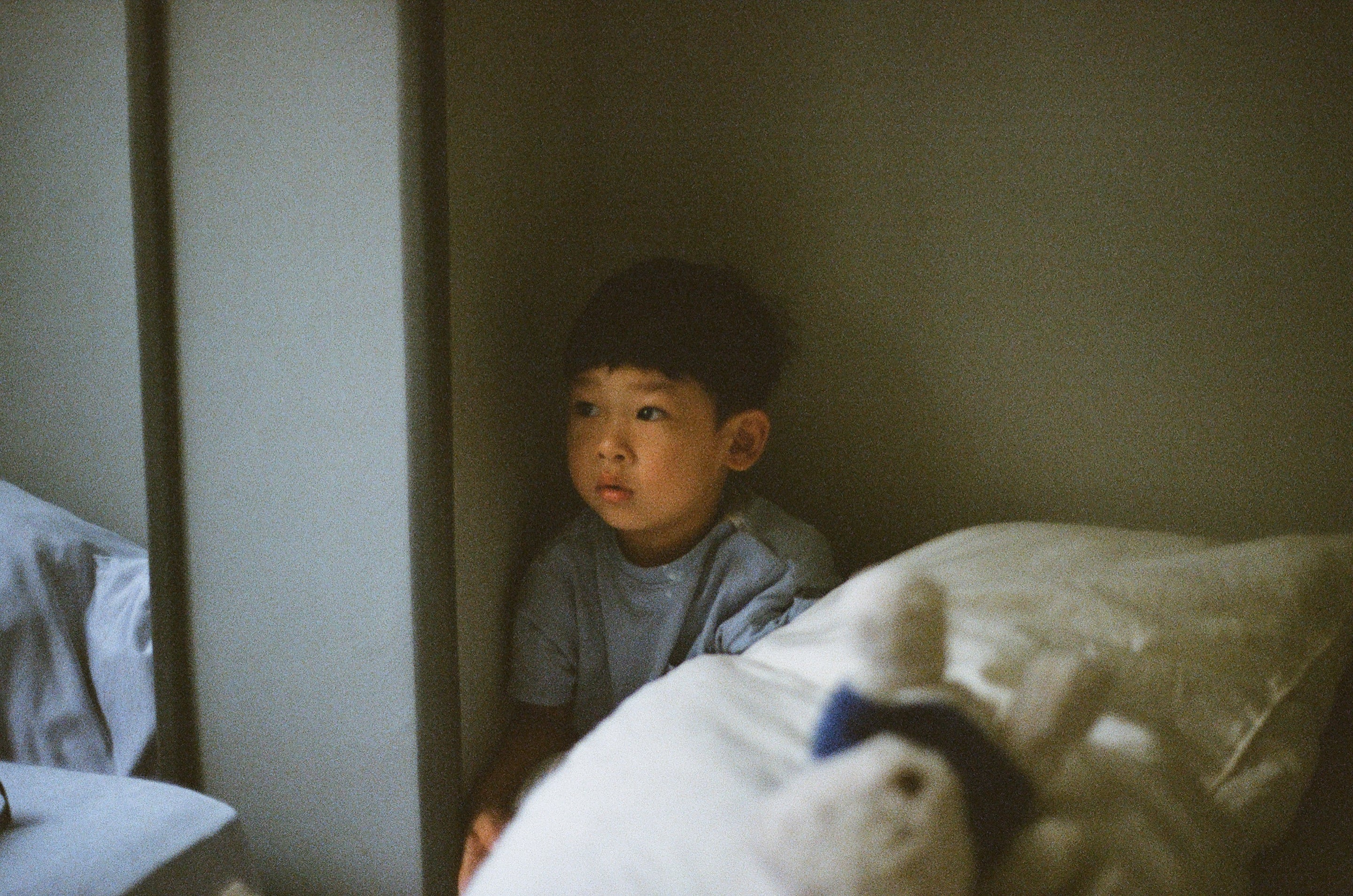 忘記這天兒子是否要上課,只記得他應該是還沒醒,坐在床角看著窗外