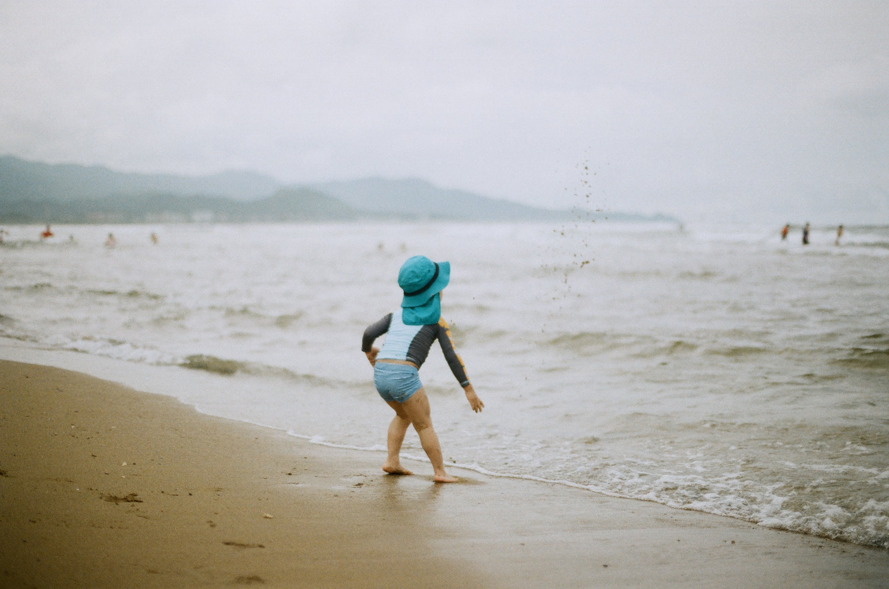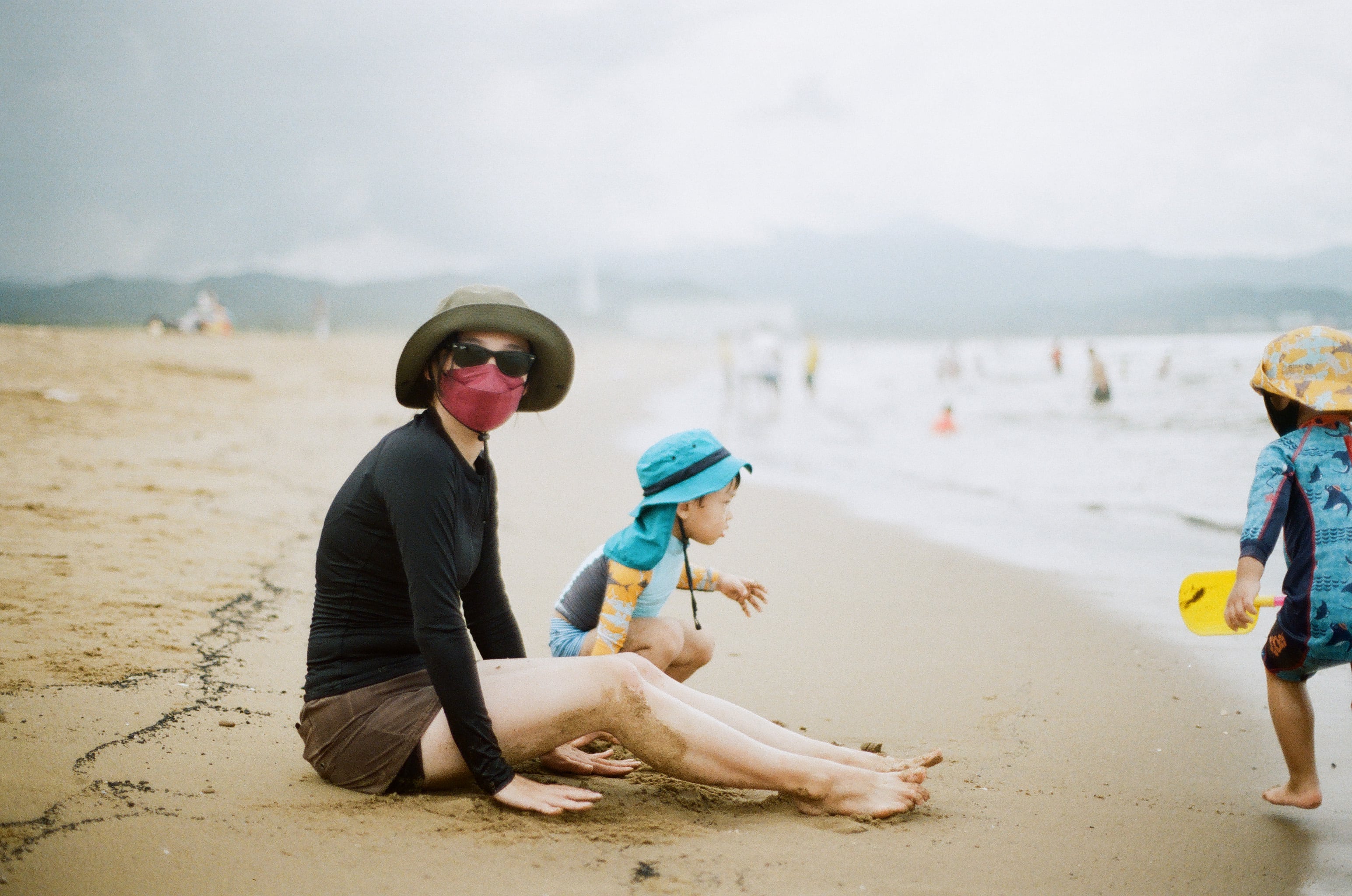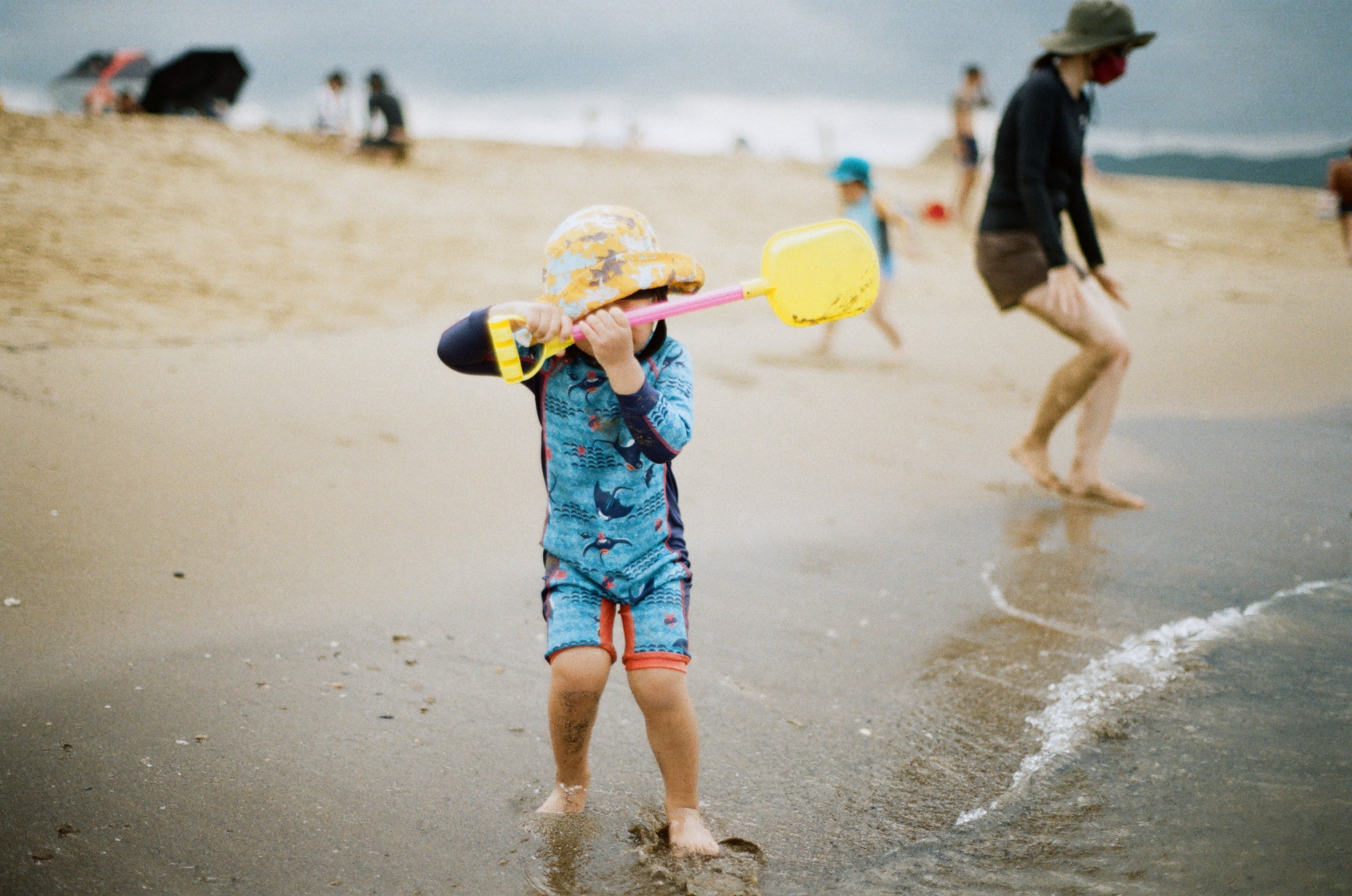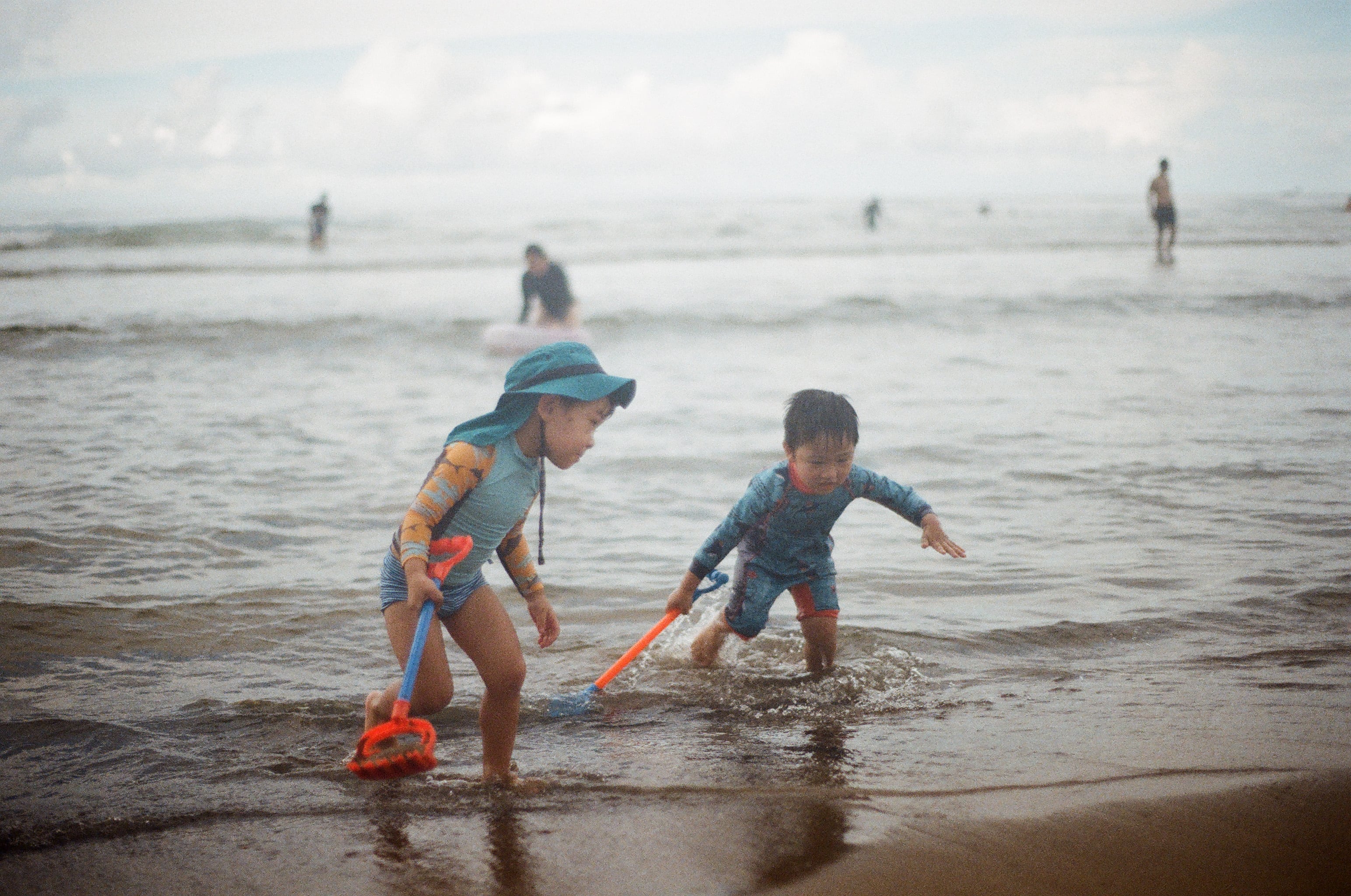 我們全家都很自豪地穿上水母衣防曬,當天真的很好玩,但就是浪太大,不適合三歲小孩(Olympus 50mm f1.4,ISO 200、f1.4)