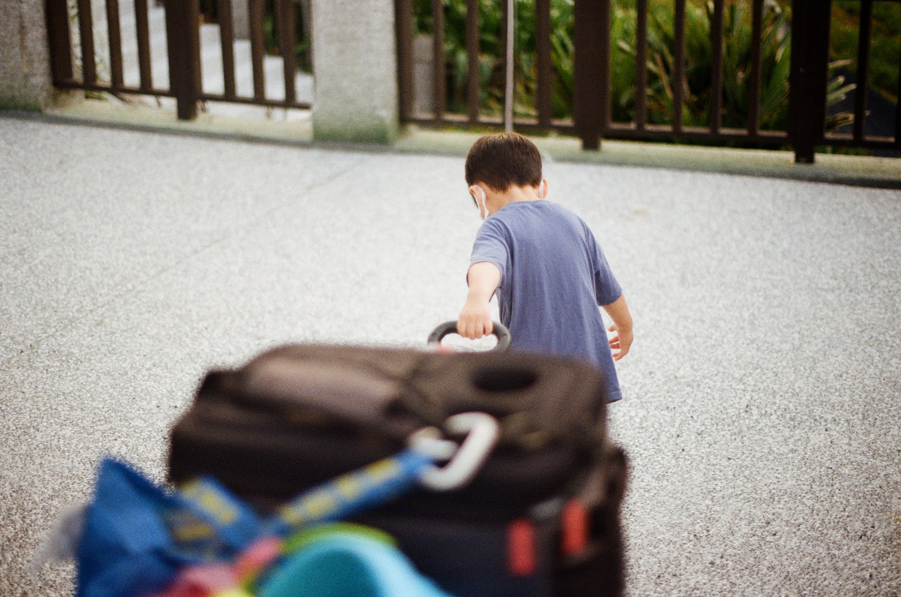 兒子很堅持要幫我拉推車,結果他還真的拉得動(Olympus 50mm f1.4,ISO 200、f1.4)
