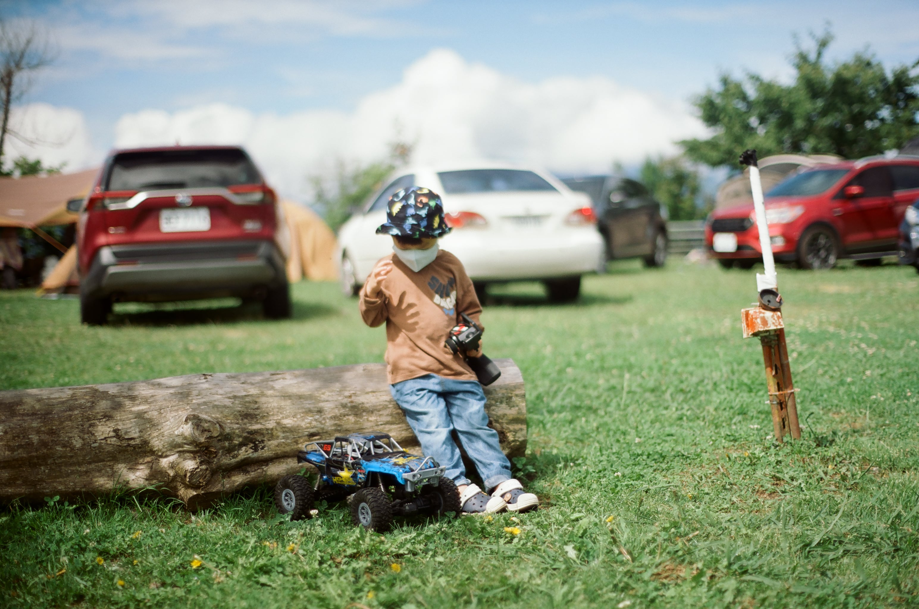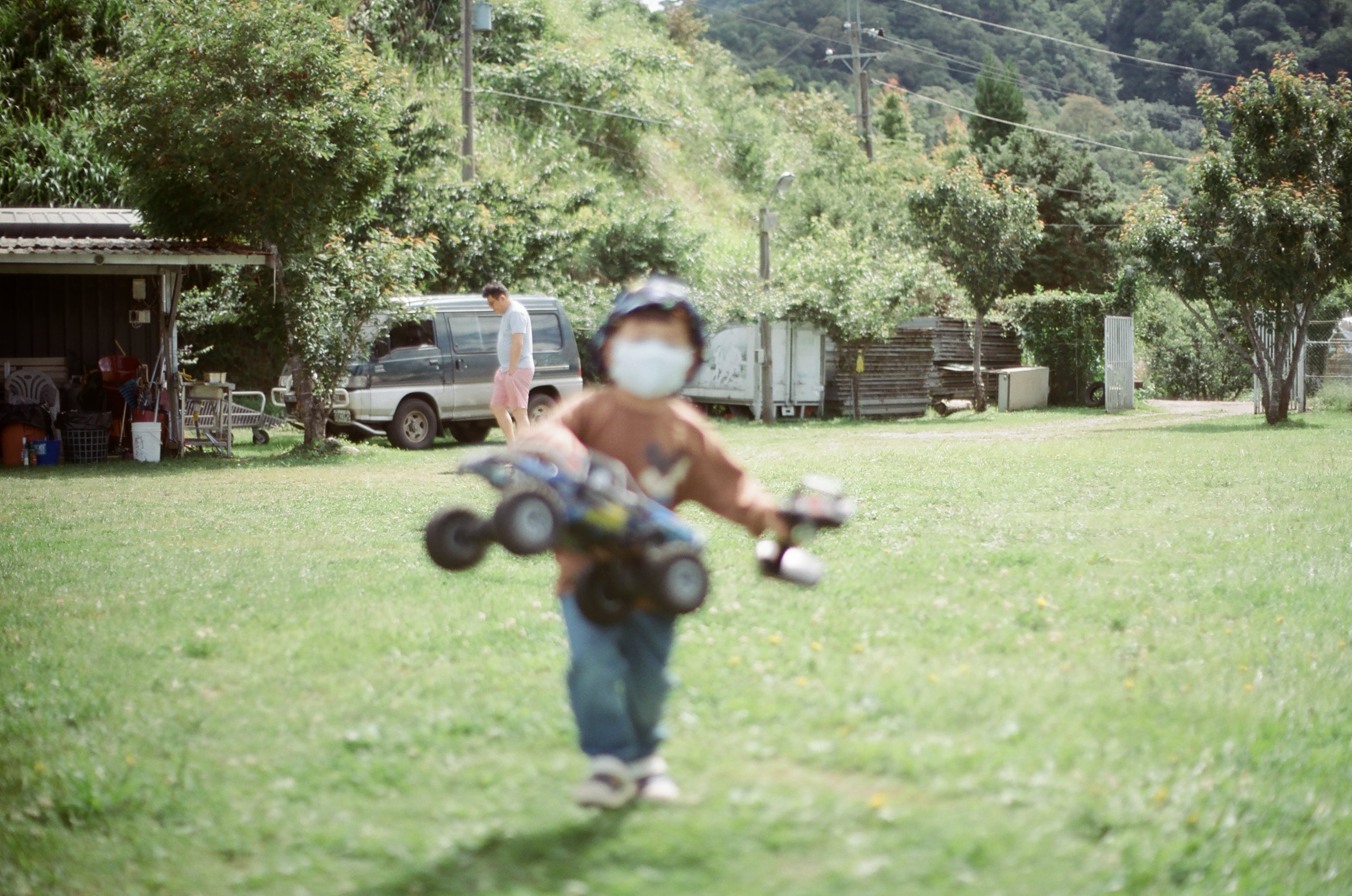 我發現大光圈老鏡的光圈全開都會這樣朦朦的,圖為兒子很專心地在操控搖控車