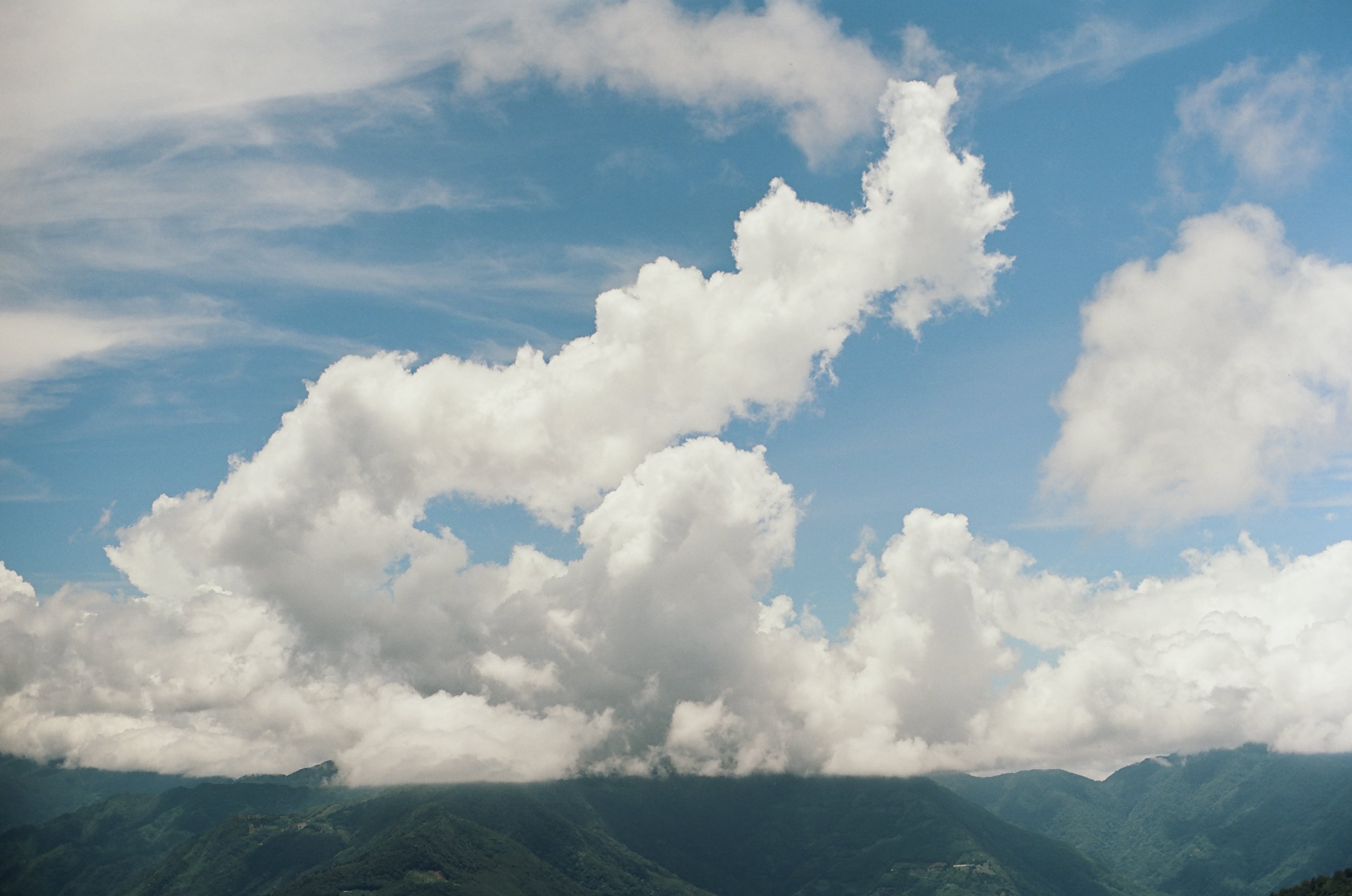 之前用 ISO 200 的底片根本搭配 Olympus OM-1,根本很難拍出這種藍天白雲,因為快門速度不夠快,都曝光太多了,但是採用 Kodak 50D 之後的效果真的一級棒,非常滿意,那個雲的結構好立體,這就是拉拉山的景