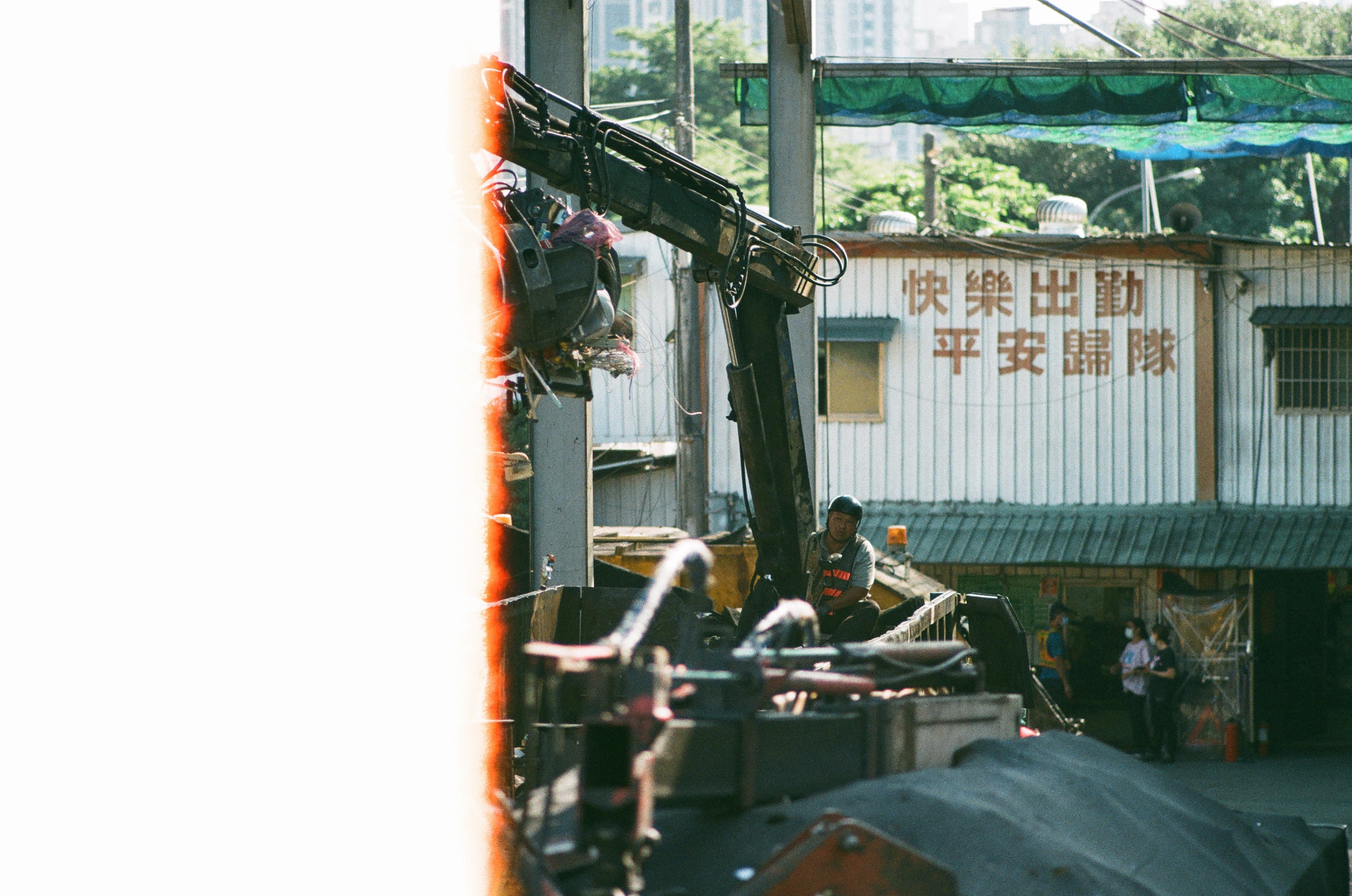 這是每天騎腳踏車載兒子上學會經過的資源回收場,兒子很喜歡看這些重機械們在工作的情形,每次都會看上個 5~10 分鐘,但如果當天比較晚出門,就會藉此壓縮到看這些抓斗的時間,我常用這個理由催促兒子動作快一點出門。Olympus 135mm f2.8(1/1000s,f2.8)
