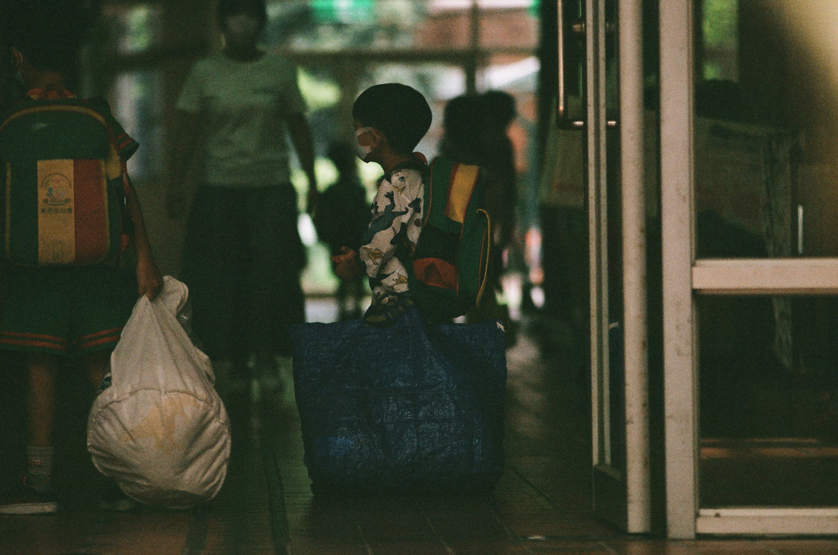 看著大包小包的兒子上學照,代表今天是星期一。Olympus 200mm f4(1/500,f4)