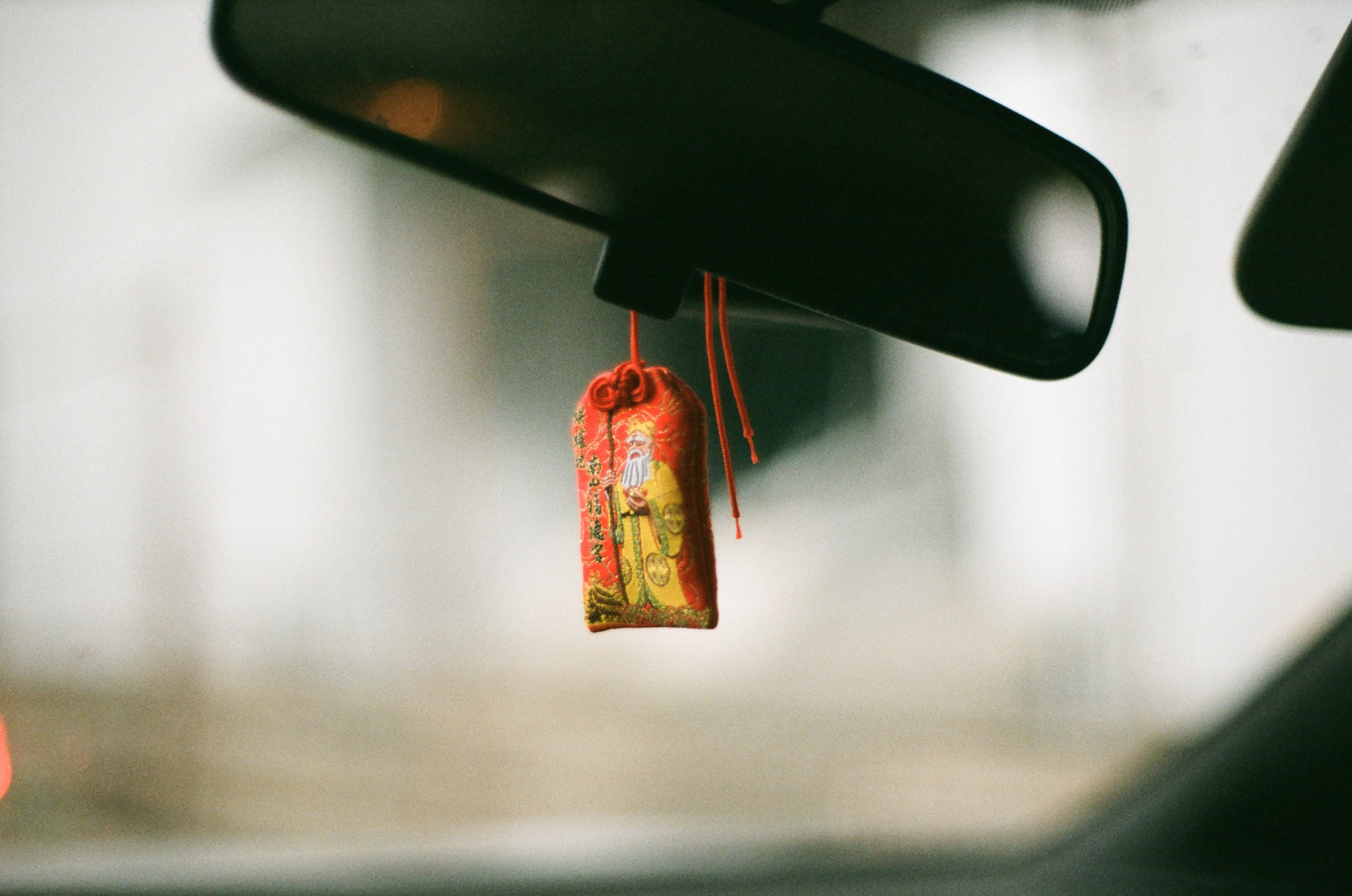 牽車至今一直掛在車上的平安符,來自中和烘爐地。Olympus 50mm f1.4(1/500s,f1.4)