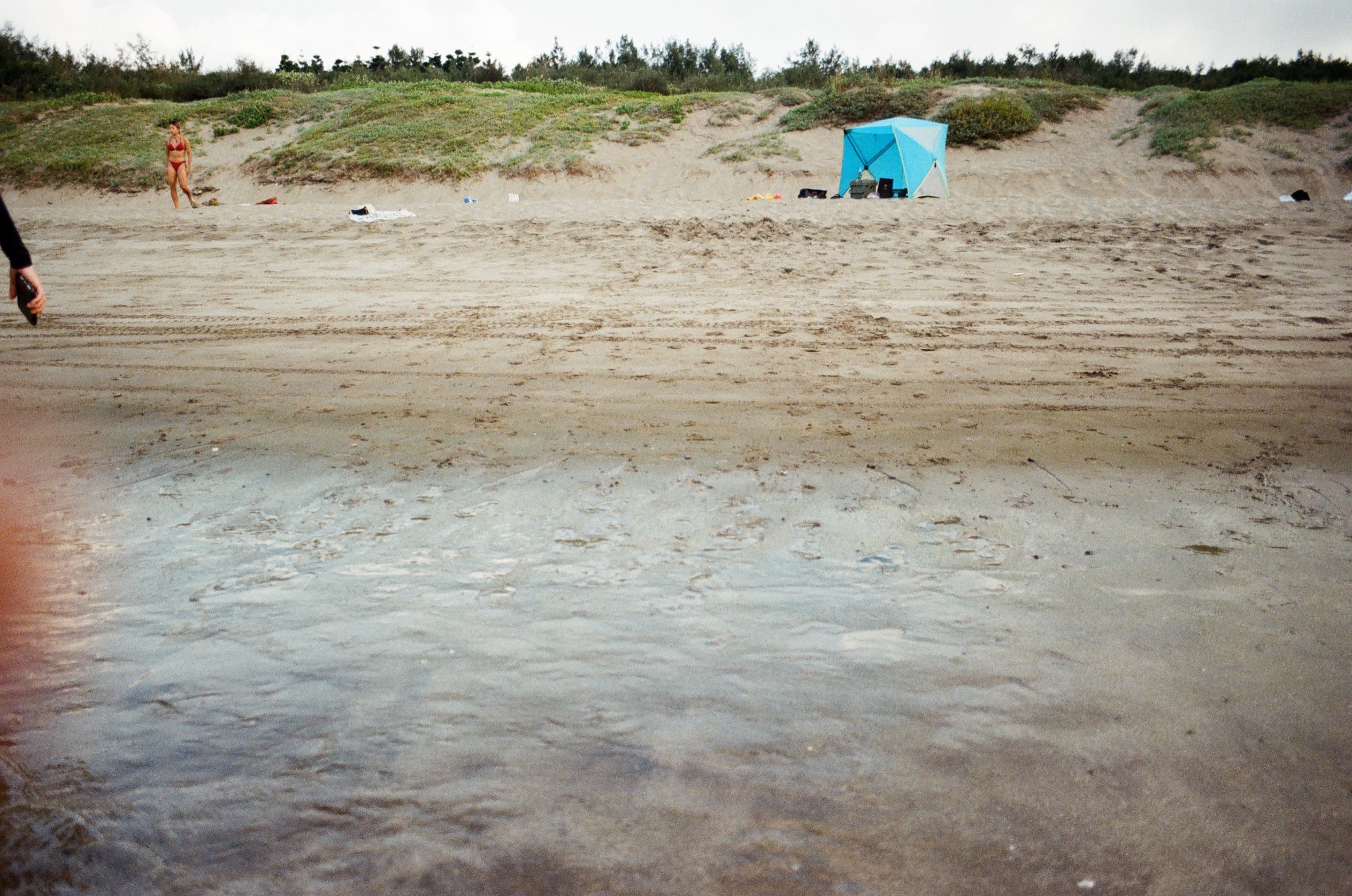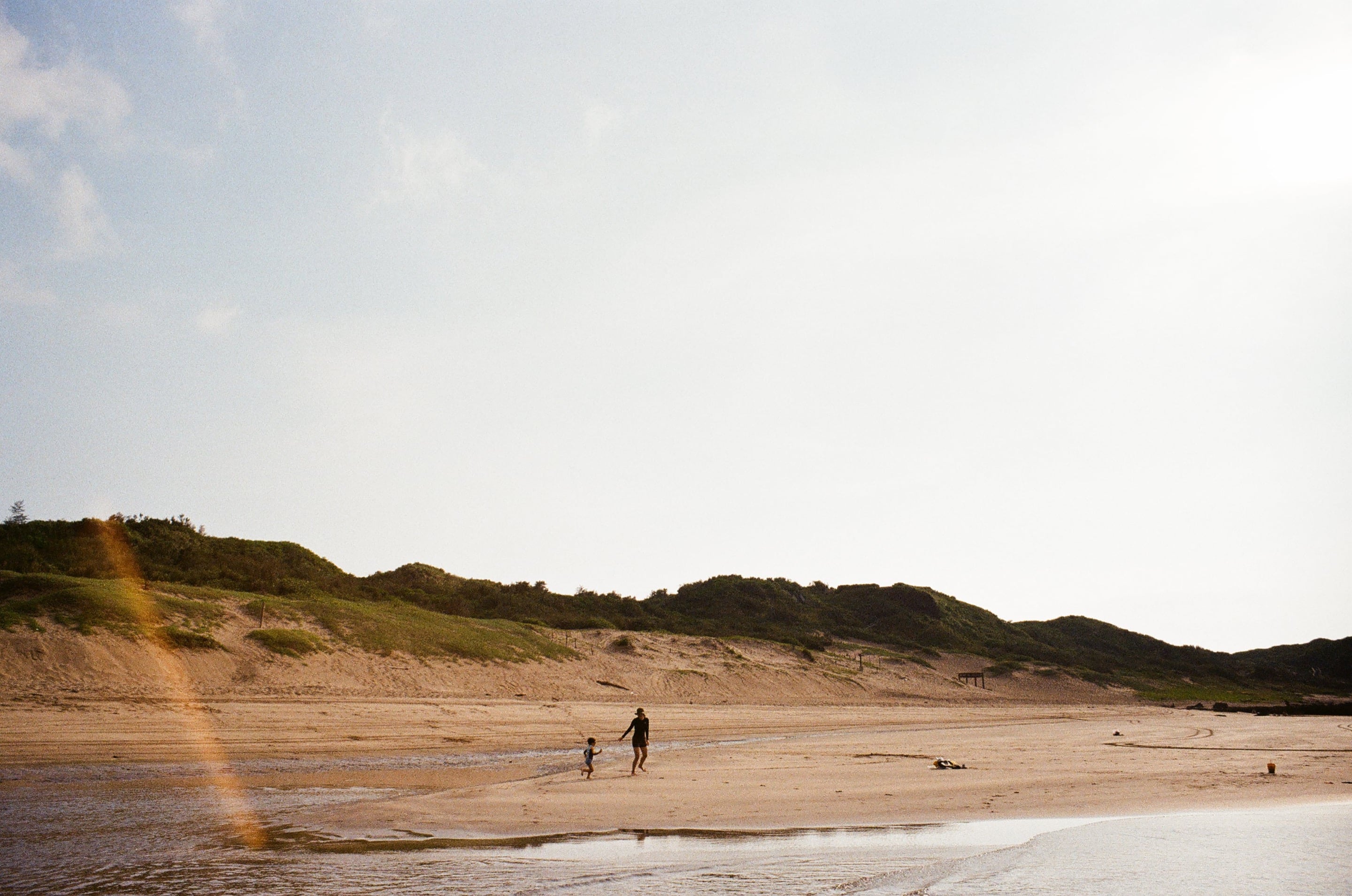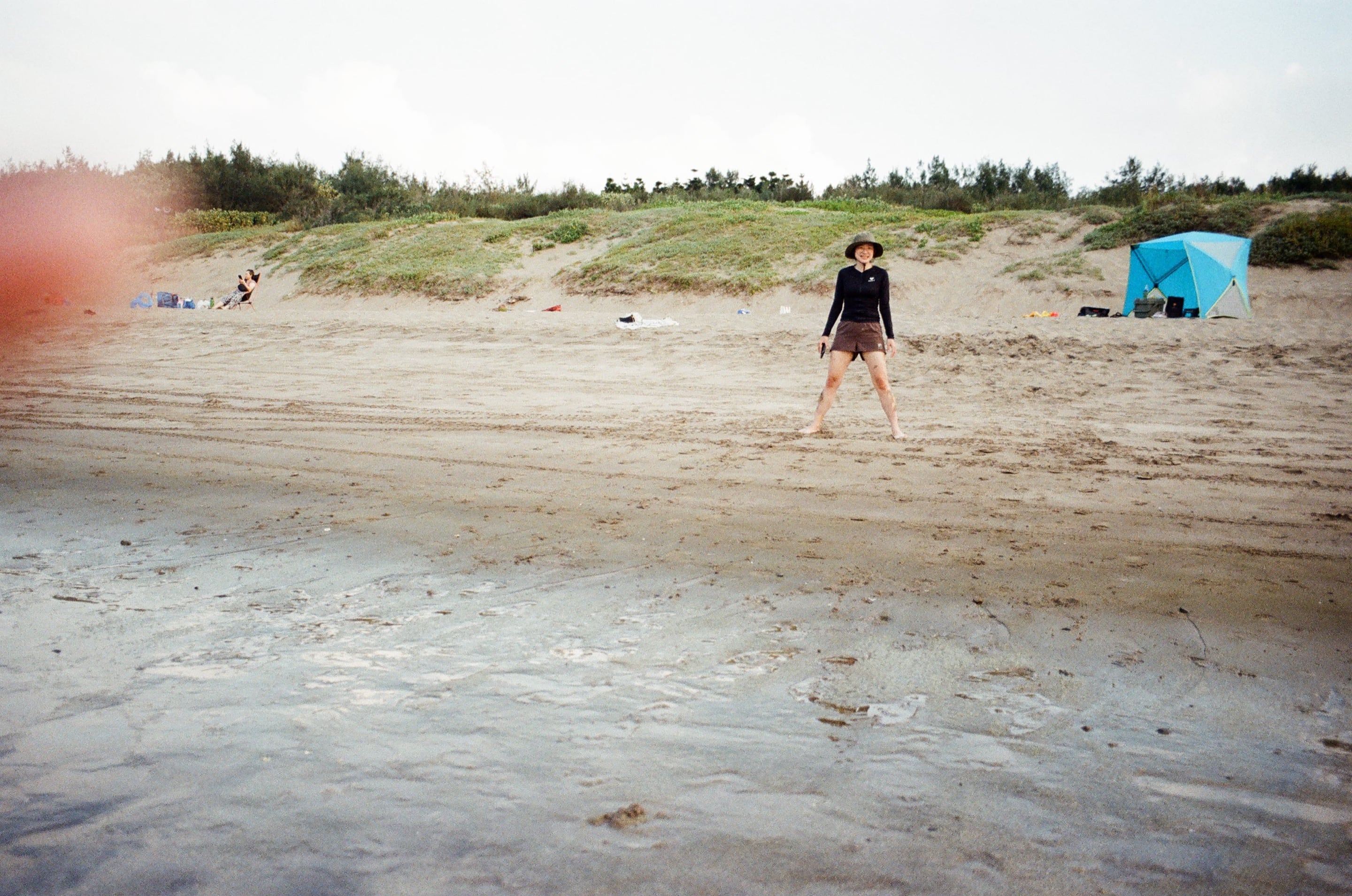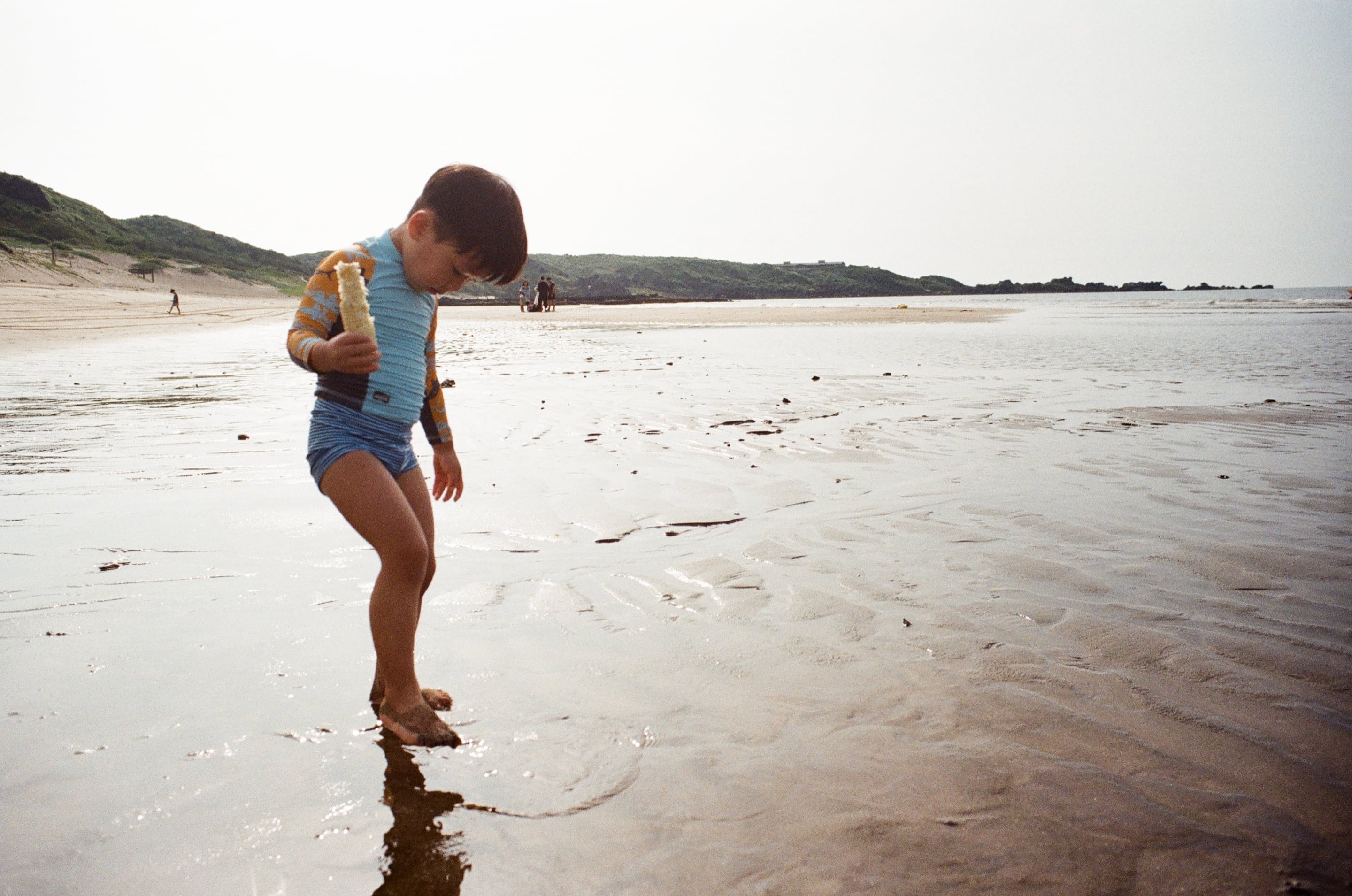 白沙灣有一大片淺灘,踩起來濕軟又舒服,不會像乾燥海灘那樣燙腳。Olympus 28mm f3.5