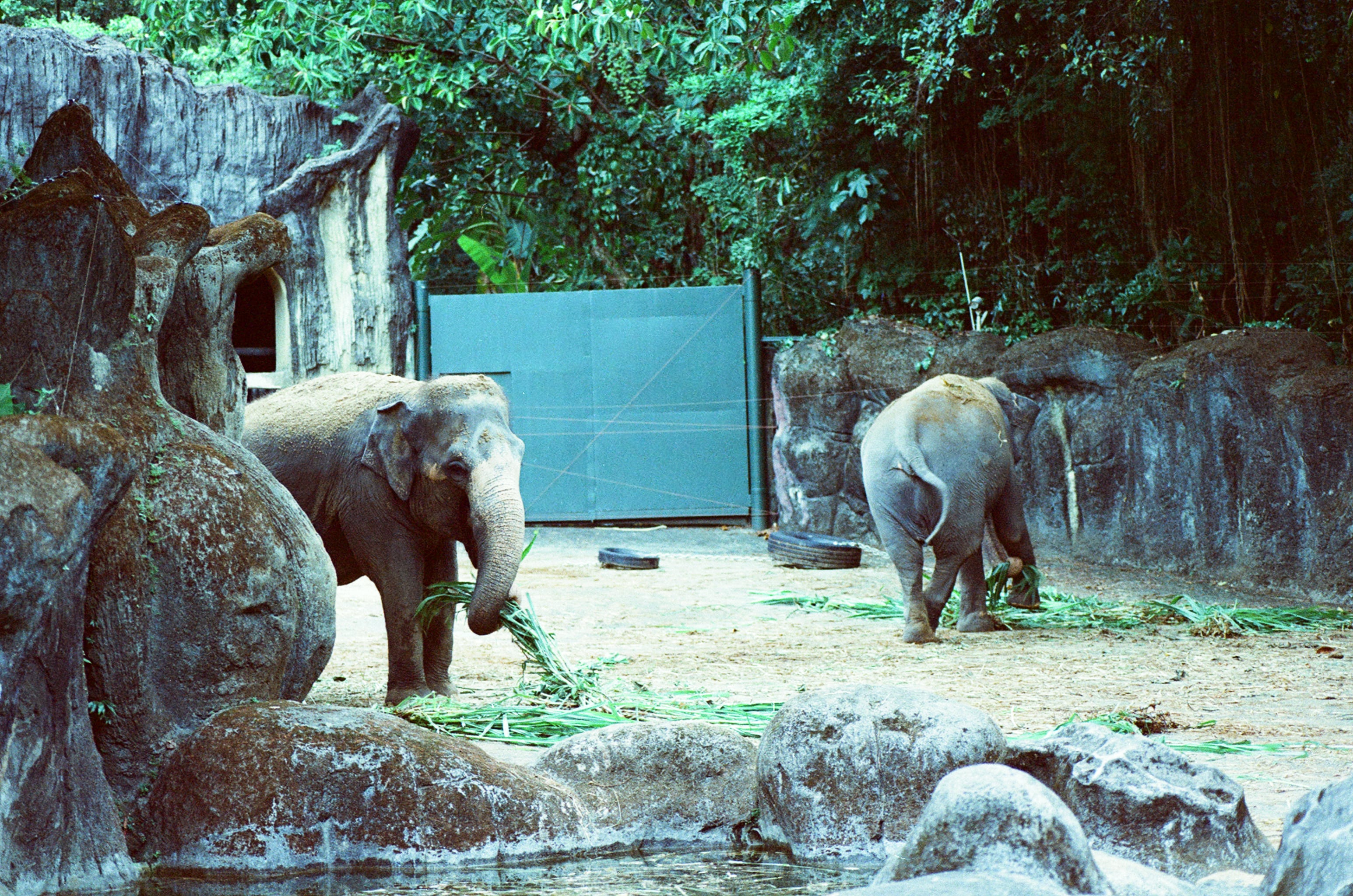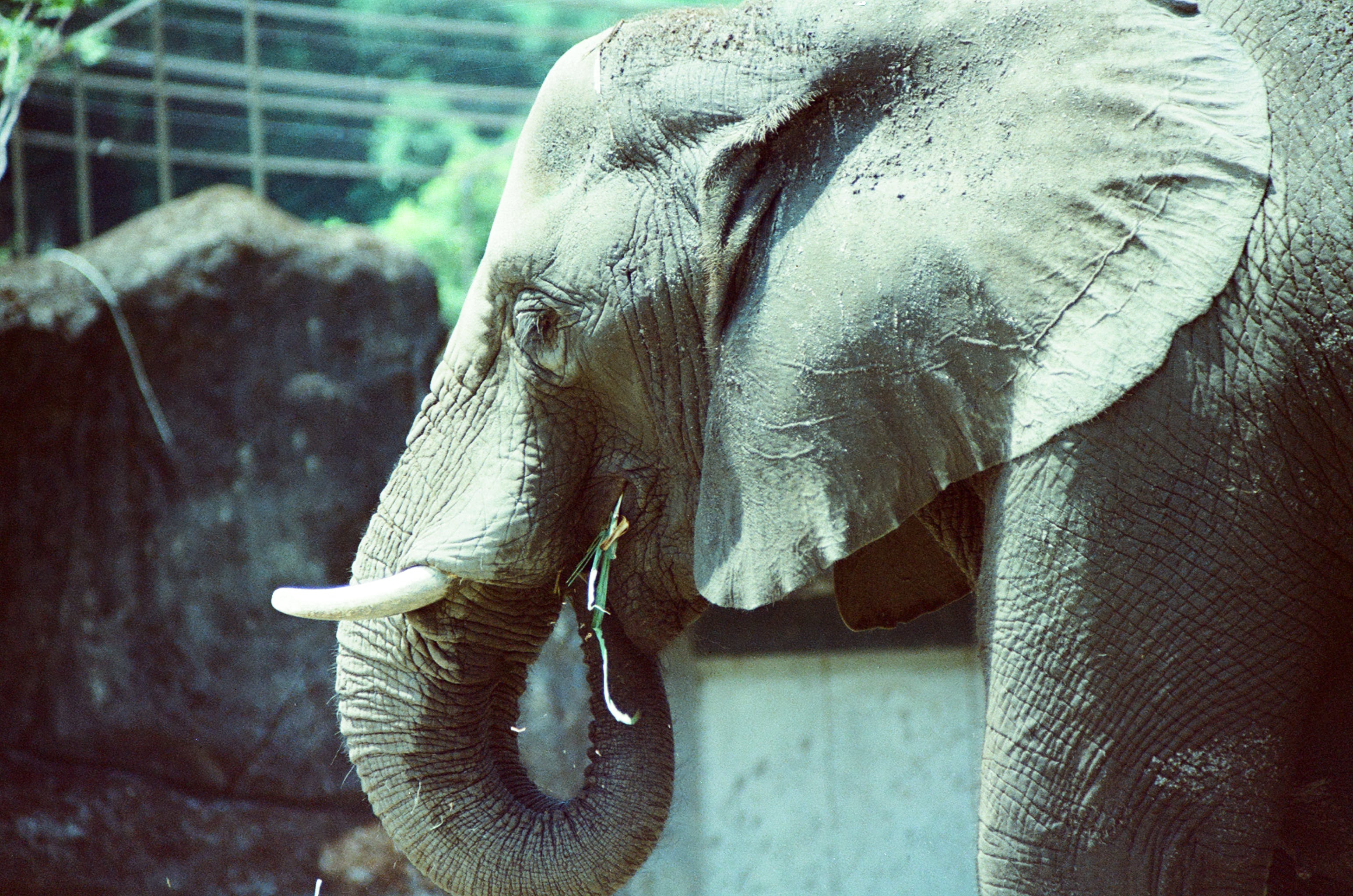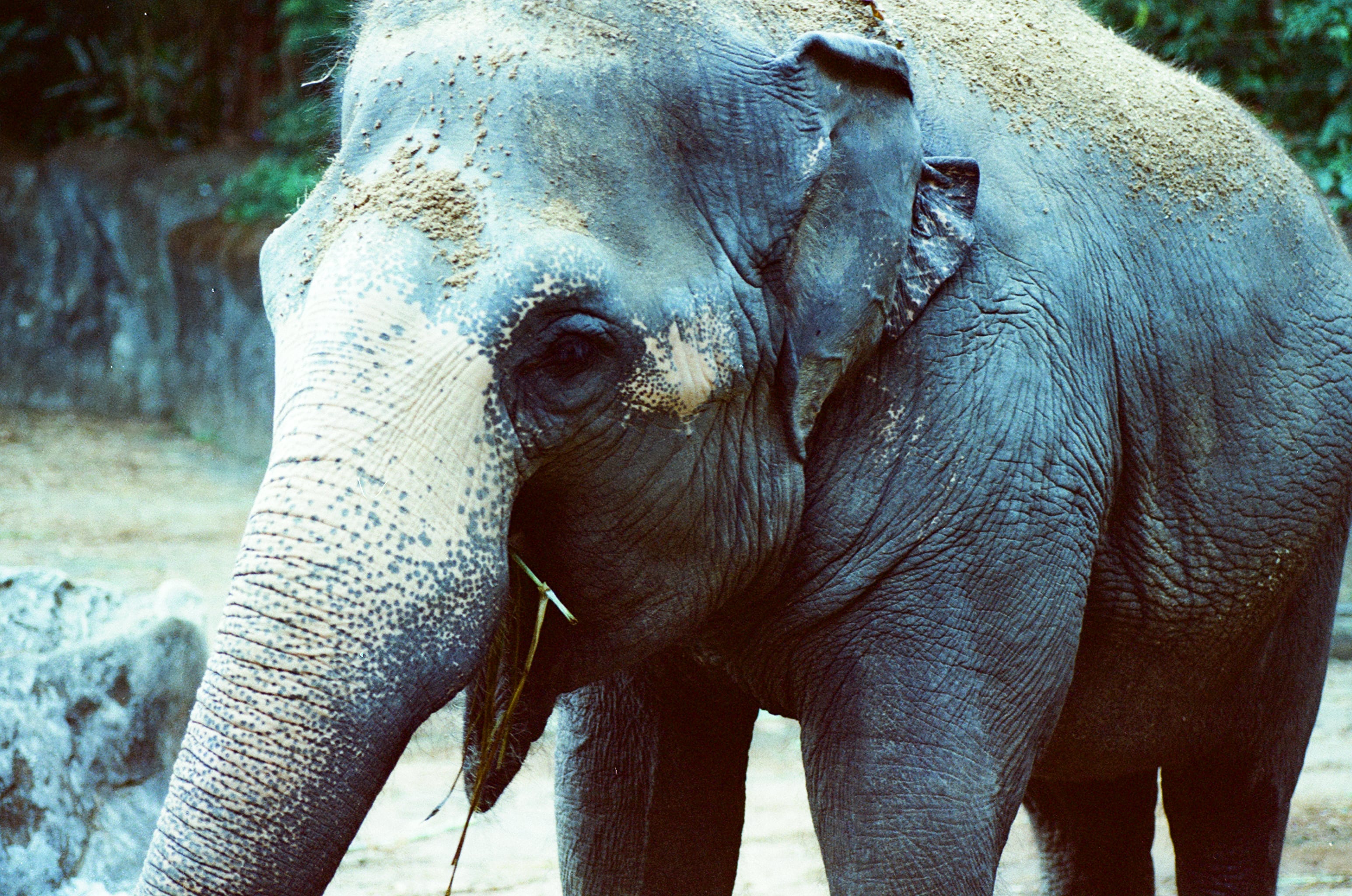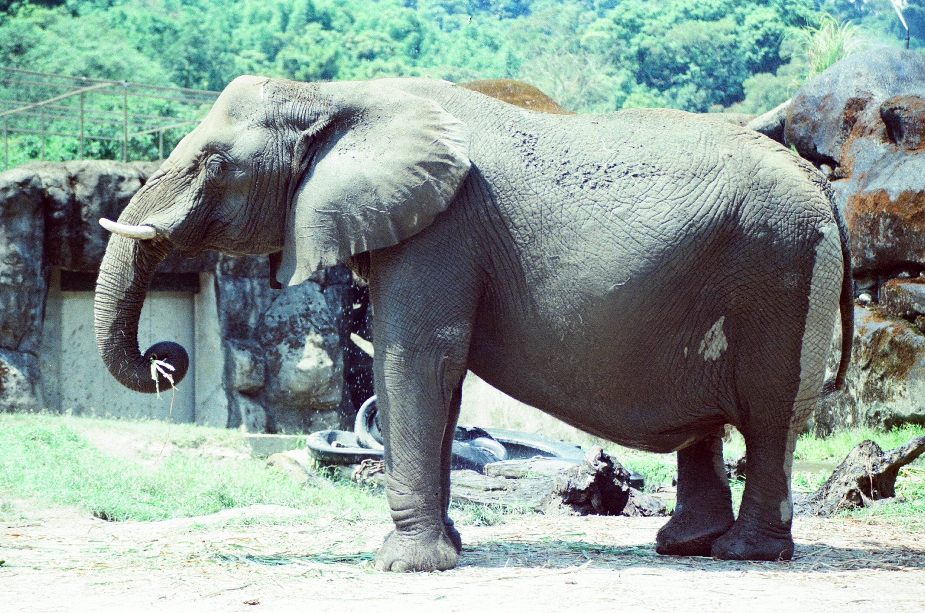用 300mm 鏡頭拍底片最不習慣的地方就在於沒有防手震,覺得拍完一輪,胸肌都變壯了,因為要一直 Hold 住呼吸。這是耳朵比較大且皮膚比較皺的非洲象,我直到 36 歲才認真觀察到這件事情,感謝兒子給我這個機會學習這些生態知識。Tamron 60-300mm f3.8-5.4 Macro 23A(@300mm)