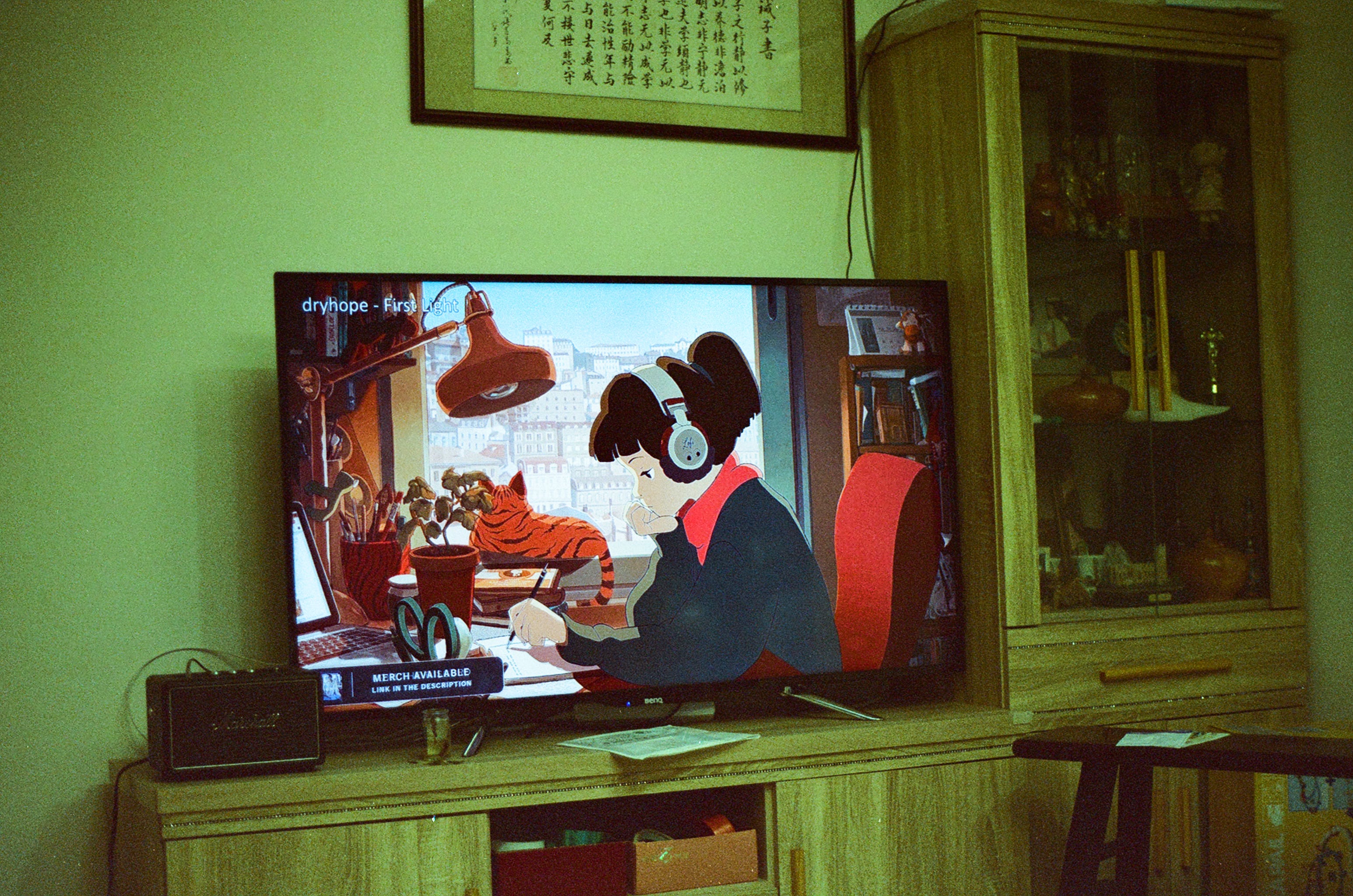 有天我在家加班工作的樣子,開電視聽音樂中。Olympus 50mm f1.8(1/60s,f1.8)