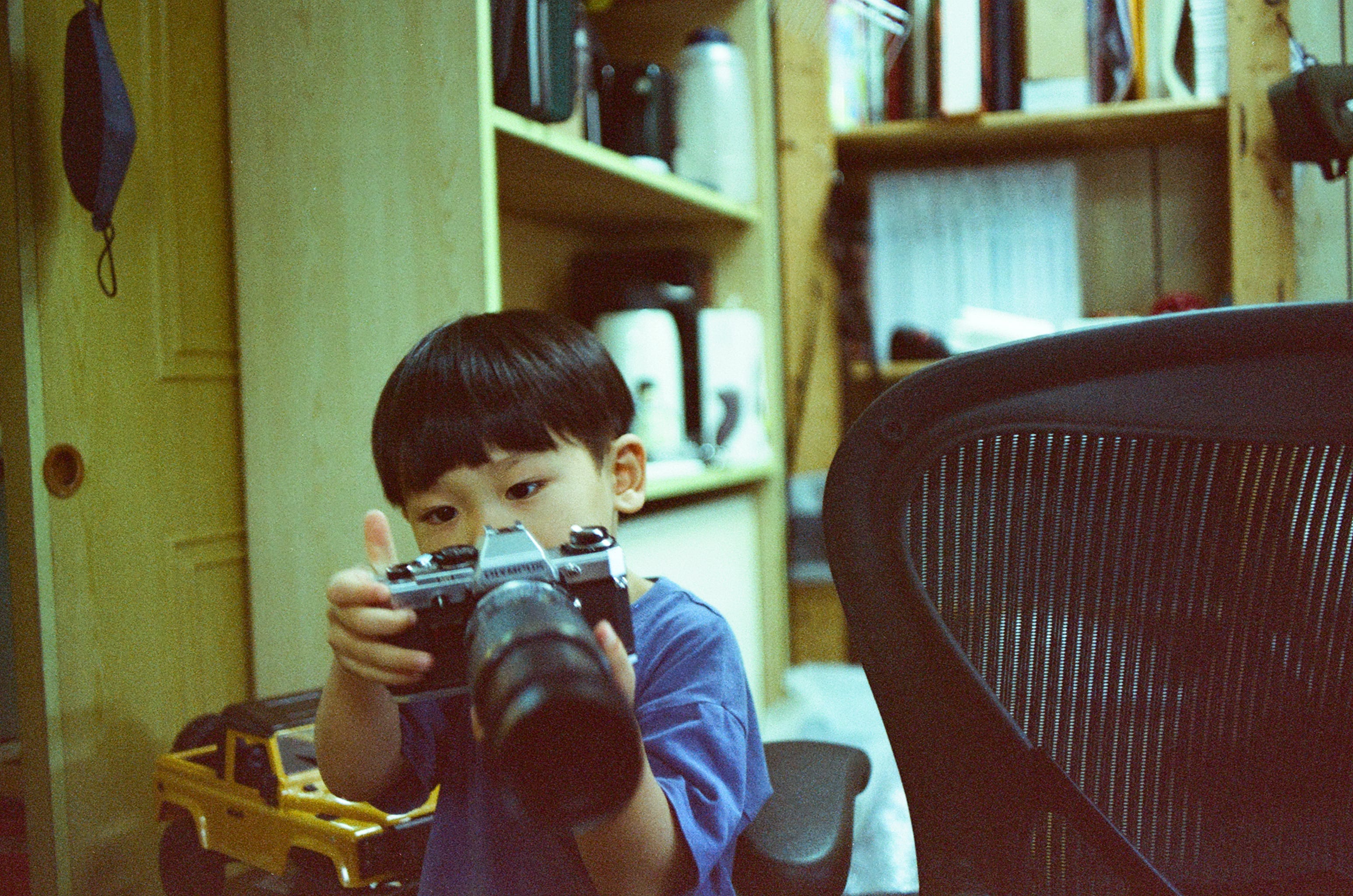 我常跟兒子說「那是貴重物品」,圖為兒子正在搶著研究爸爸又買了哪些新東西,因為包裹實在是太多了,爸爸正處於一個顧此失彼、來不及守備的狀態。Olympus 35mm f2(1/60,f2)
