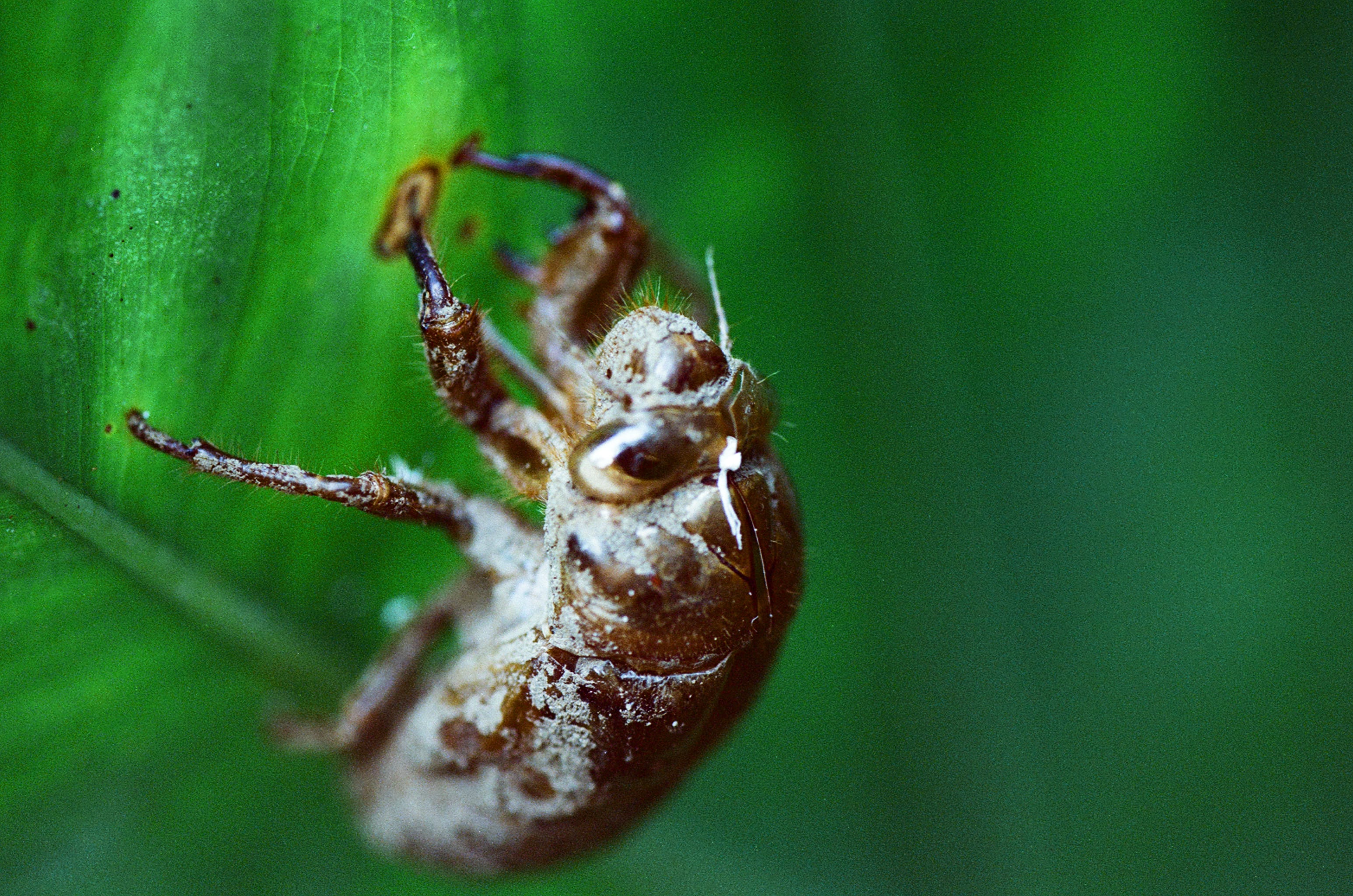 金蟬脫殼,拍到現在,我覺得 90mm 微距用 f5.6 或 f8 光圈來拍的景深會比較夠,還是需要搭配 ISO 400 或 800 的底片。Tamron 90mm f2.8 Macro 72B(1/125,f4)