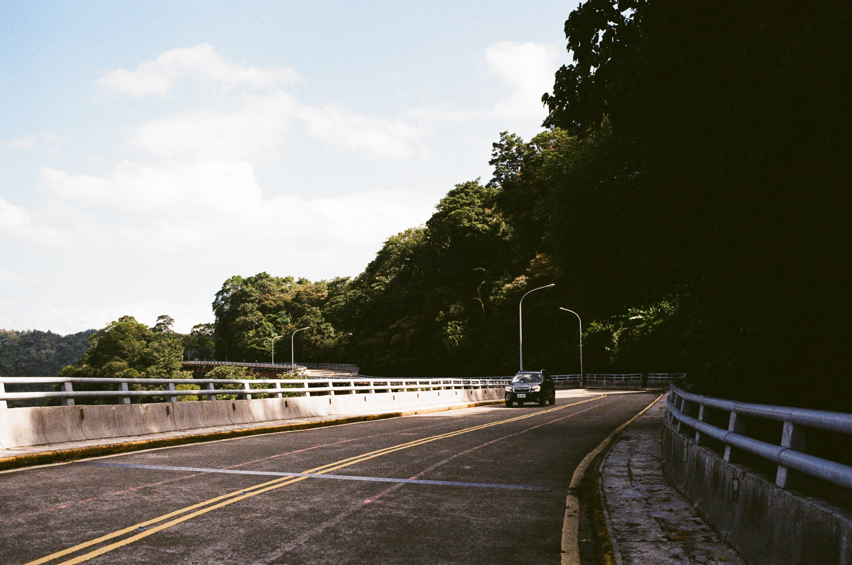 跑在秀岡橋上的跑車。這卷底片給我最大的心得,就是以後風景最佳光圈應是 f8,不要管什麼畫質減損,景深控制更加重要。Olympus 135mm f2.8(1/1000,f2.8)