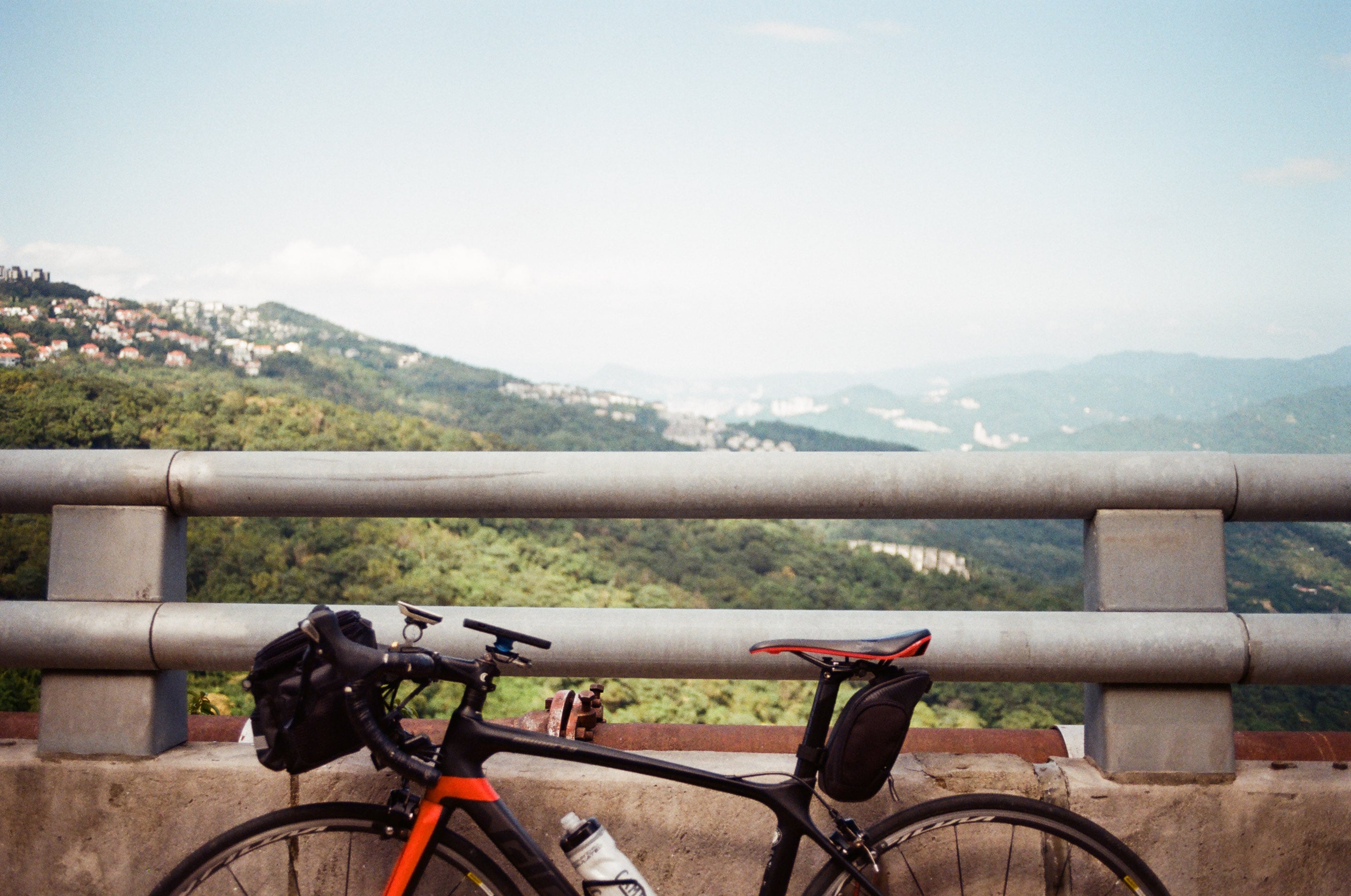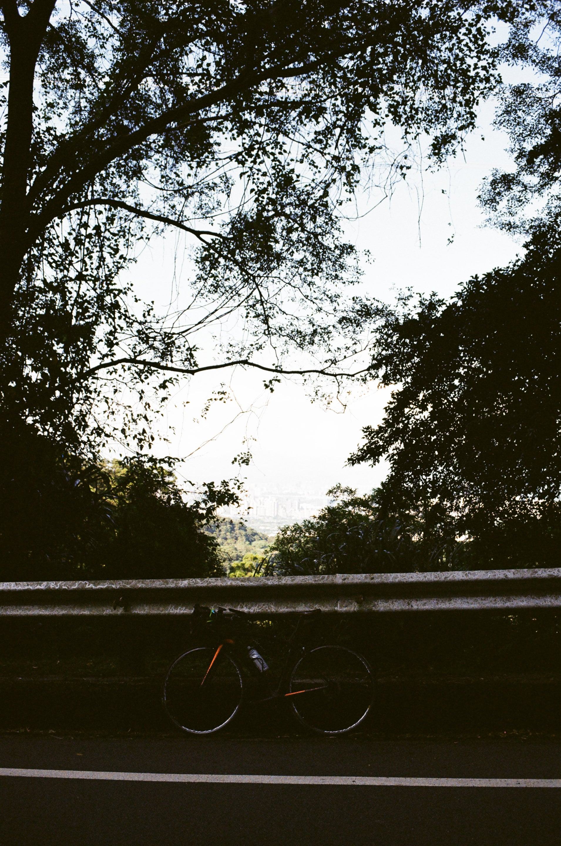 中和烘爐地,車頭一大包是放相機的,我發現騎腳踏車拍路線很困難的地方在於很容易手抖,因為騎腳踏車爬坡非常需要手出力的關係。因此,我常常發現一個地方要拍,下車後取景完畢後卻按不下快門,因為止不住手震。Olympus 135mm f2.8(1/500,f8)