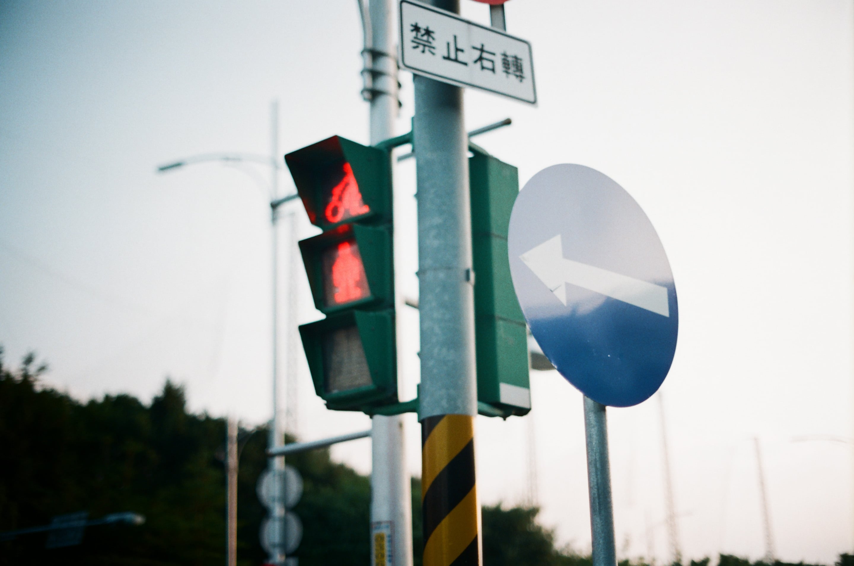 有天下課,走路去接兒子,路上都會固定經過的一個路口號誌。Olympus OM 50mm f1.4(1/1000,f1.4)