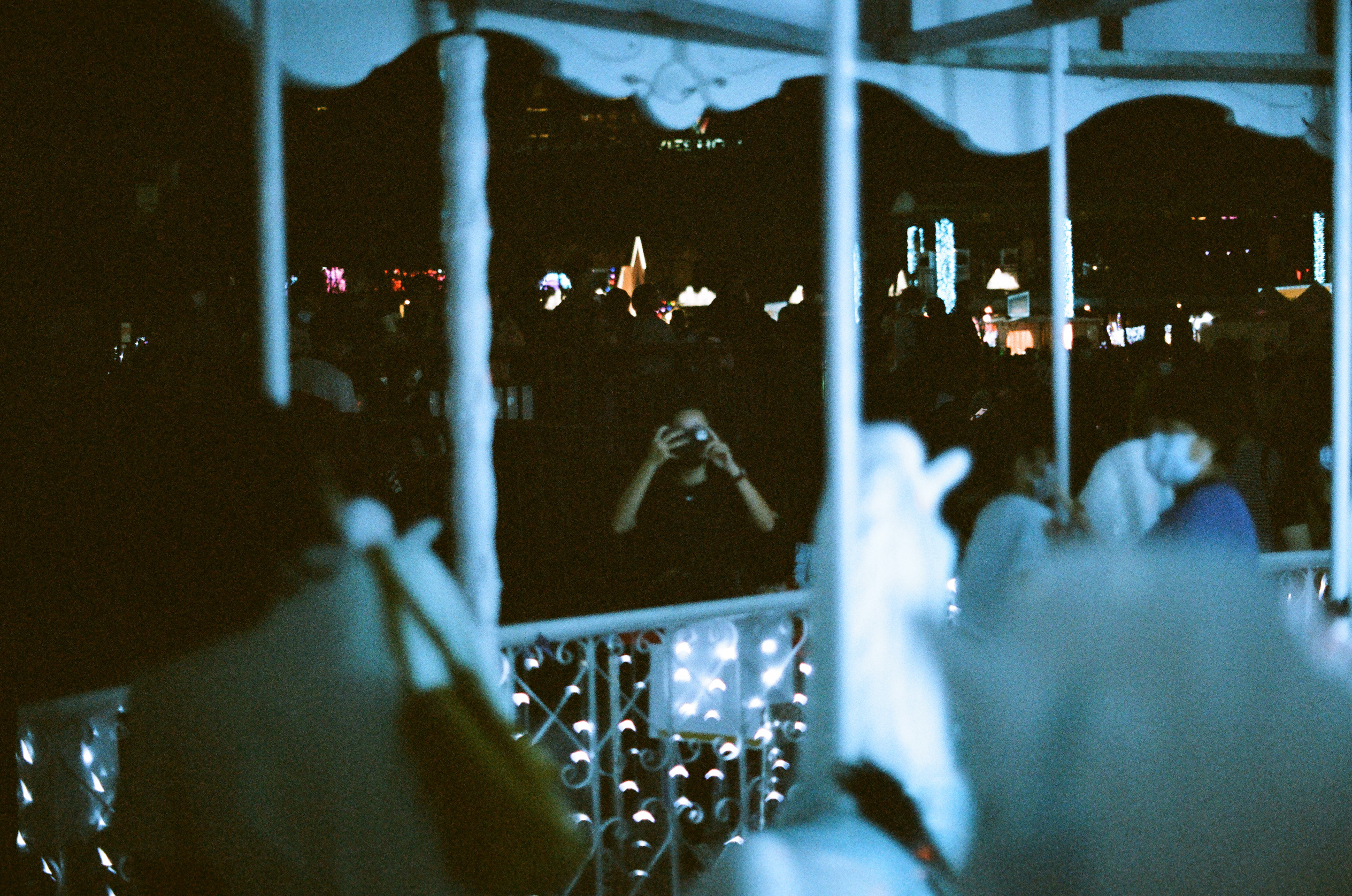 目前,我們位於板橋人都一直反對舉辦的新北耶誕城。Olympus OM 50mm f1.4(1/60,f1.4)