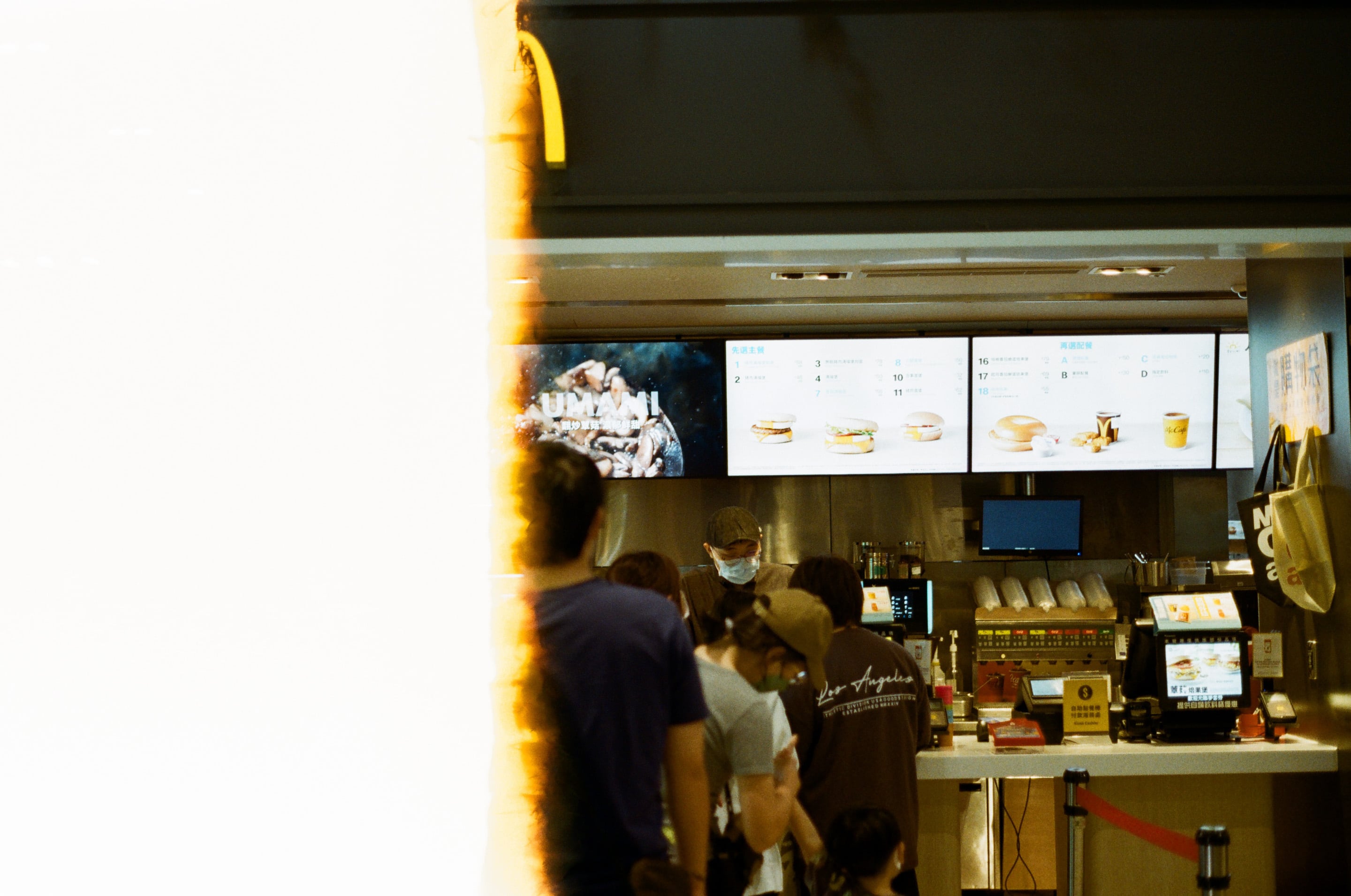 和家人正在排隊買麥當勞早餐。我在五年前剛出來接案工作的時候,曾經有一年多的時間都用麥當勞當我的辦公空間,因為有網路、有廁所、還有冷氣和吃的。好長一段時間,我都非常依賴麥當勞,那段時間雖然辛苦,但其實每分每秒都是聚精會神、全身關注地在工作。那時小孩還沒出生,現在回顧,那段刻苦的時間就是我人生工作的...里程碑了,不能講巔峰,因為我還不想走下坡。Olympus OM 50mm f1.8(1/30,f1.8)