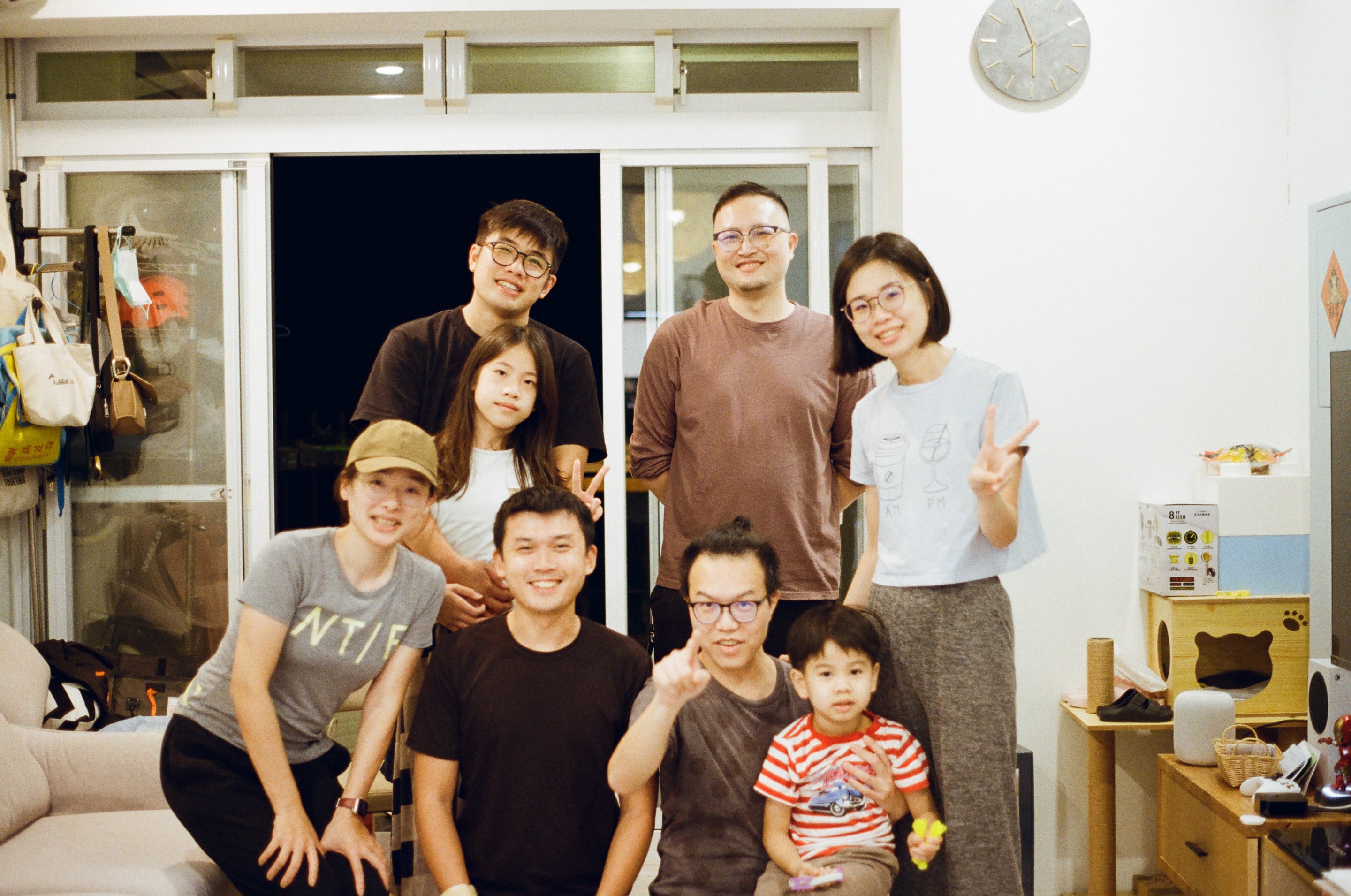 我和大學專題同組成員們(都男的),我們約了一場久違的聚會,好開心,那天。你看我,這可能是我拍了這麼多卷底片,自己笑的最開心、自然的一張照片。Olympus OM 50mm f1.8(1/30,f1.8)