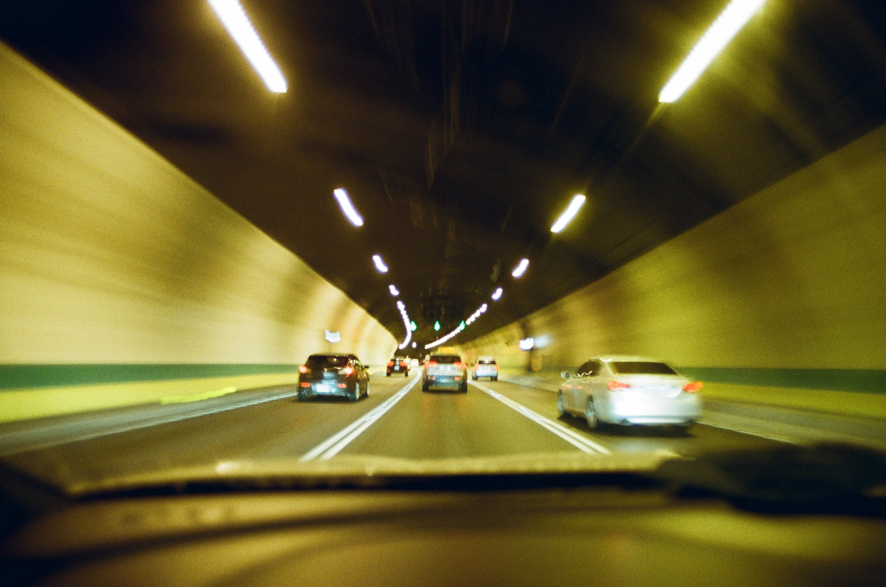 在用了 24mm 的鏡頭之後,發現拿來拍車內第一人稱視角很好用,如果是 Olympus OM 24mm f2 的話,可以在燈光昏暗內的隧道爭取最多的進光量。Olympus OM 24mm f2(1/4,f2)