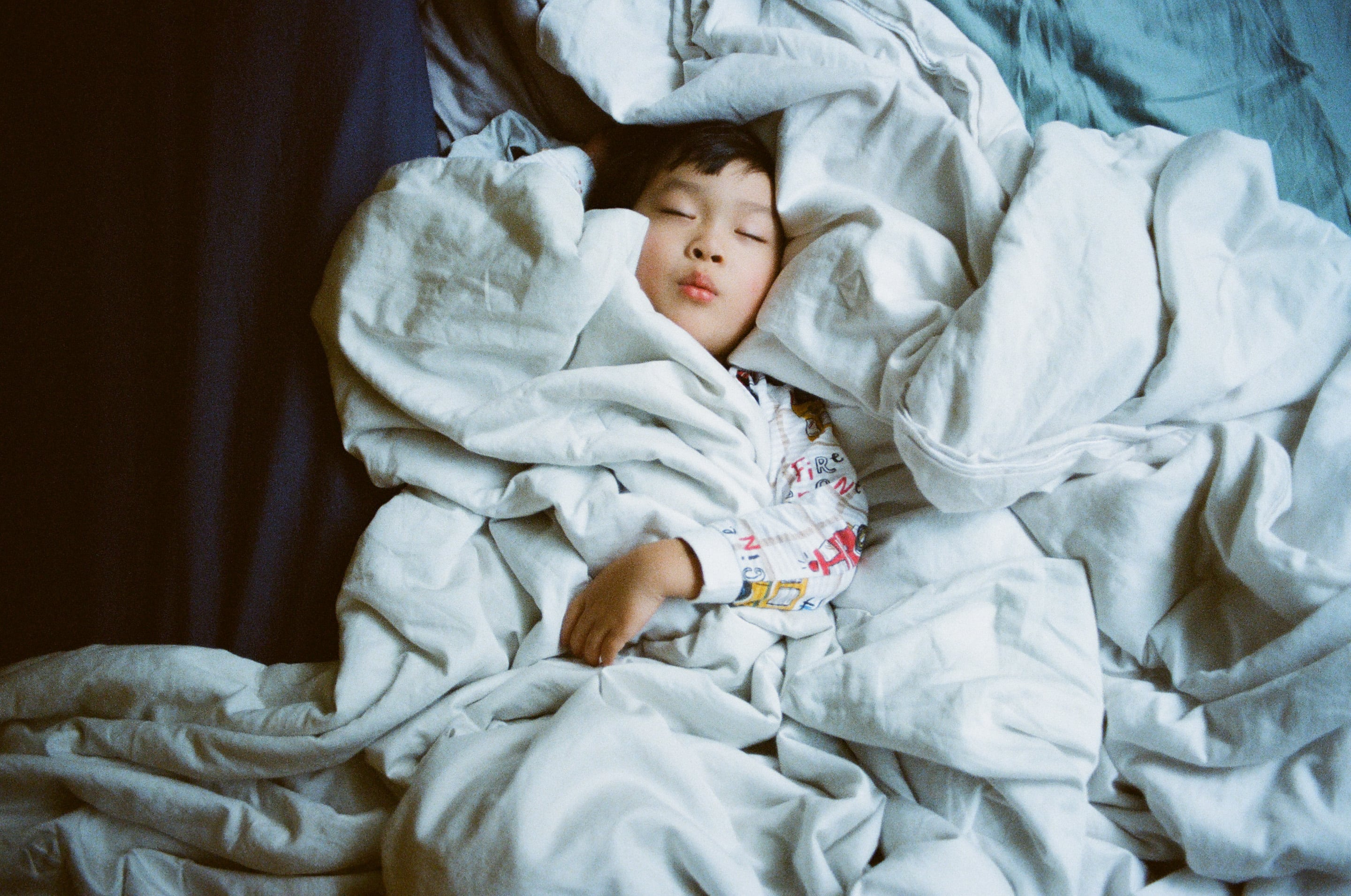 還在睡覺的兒子,但他該起床上學了。我們家的床沒有床架,因為當初怕兒子從床上滾下來,於是就把床架給拆了,目前就是兩張床擺在地上,一張雙人床,一張單人床,中間有條縫,原本是設計可以坐在床邊使用,結果兒子卻很愛睡在這個縫裡,也許這是一種被包圍的安全感。Olympus OM 35mm f2(1/30,f2)