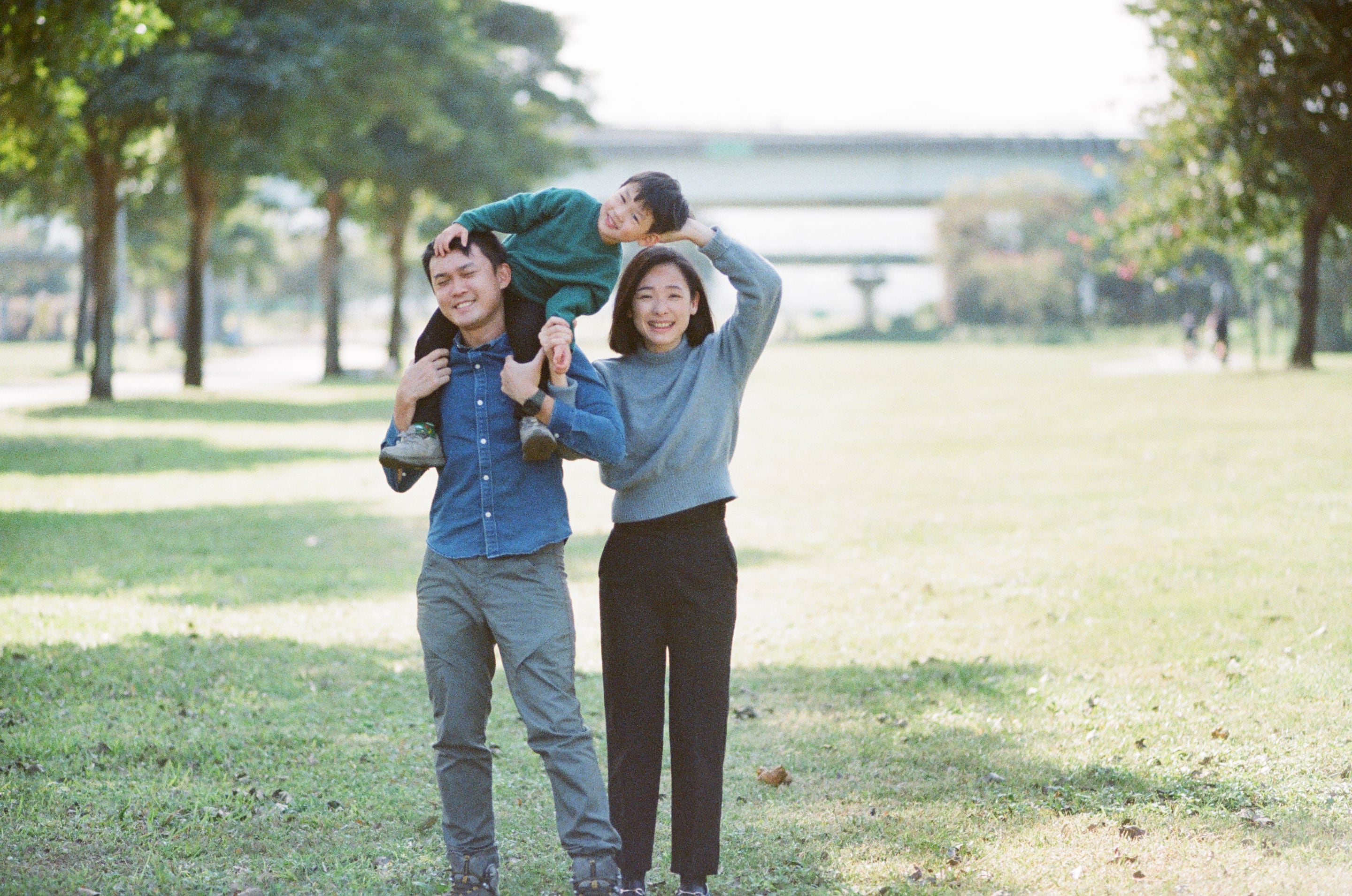 很喜歡這一張,我媽幫我們一家三口拍的照片。Olympus OM 100mm f2(1/2000,f2)