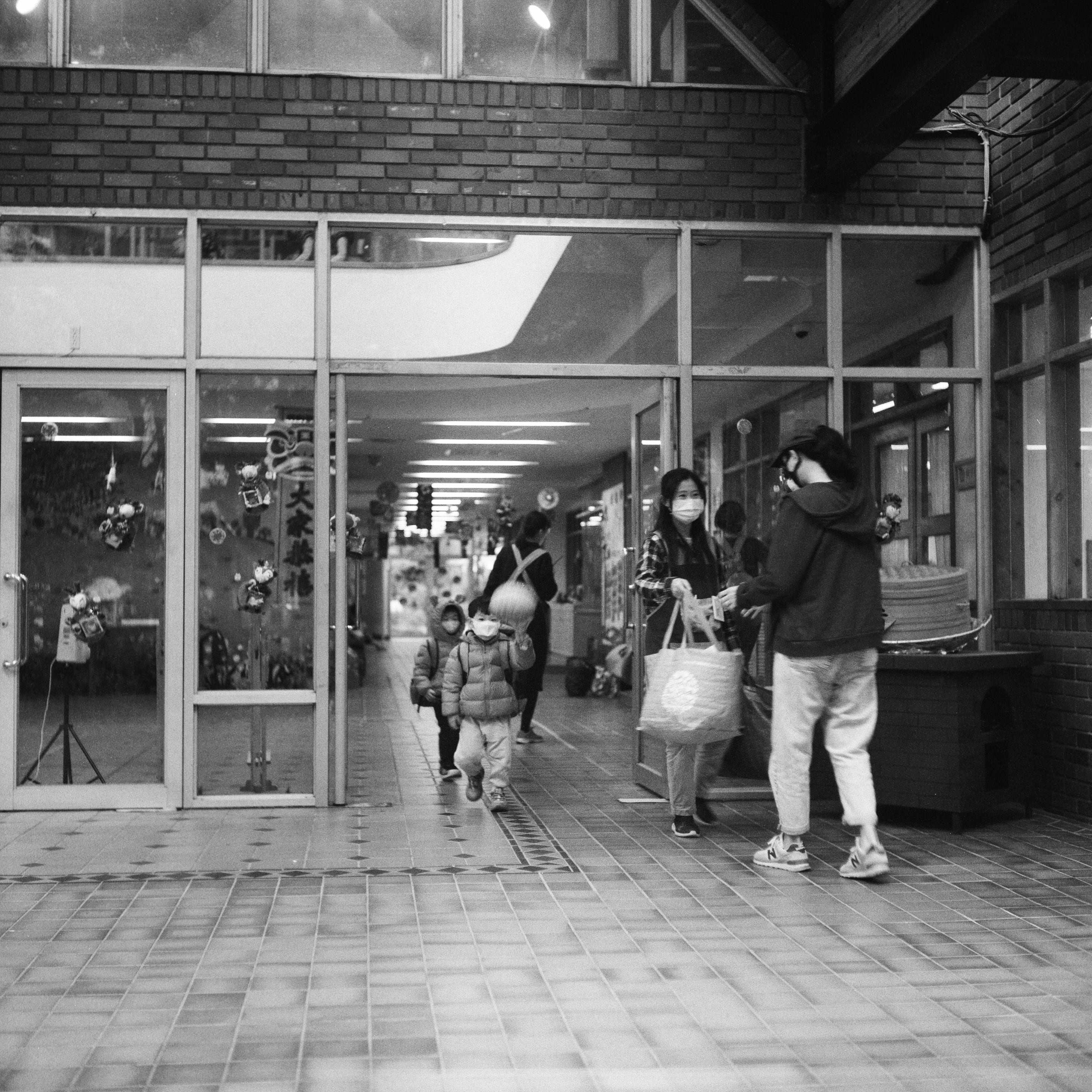接小孩。以前一直很不好意思拿相機對著學校門口等待小孩出現,拿了雙眼之後整個沒壓力,陷阱對焦,對好對滿。Olympus D.Zuiko 75mm f2.8(1/50,f2.8)