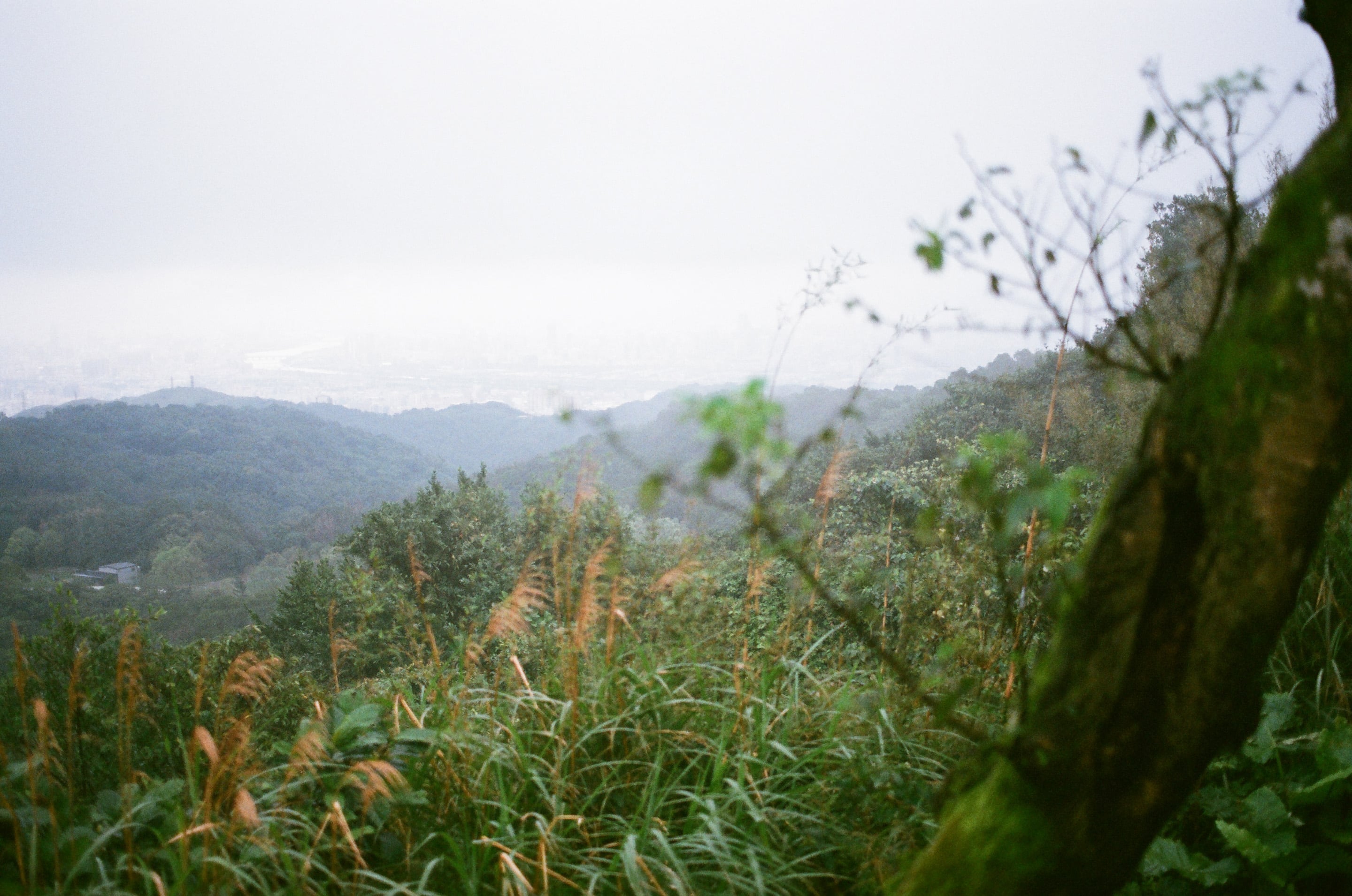 從大棟山 405 高地望向遠方,雖然這邊的地勢比較高,但我覺得石灰坑大榕樹的景緻比較美麗。Olympus OM 40mm f2(1/1000,f2)