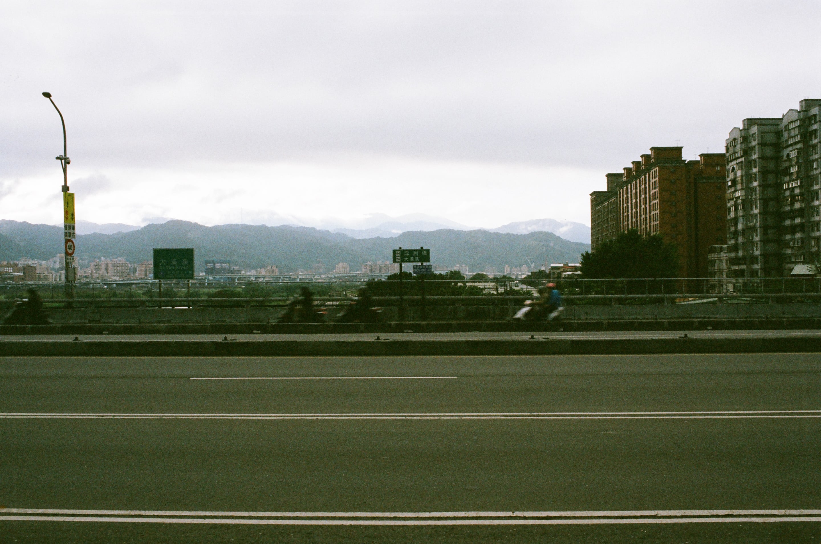 剛上浮洲橋,正想拍個車軌,但我不小心按到了快門。Olympus OM 40mm f2(1/2,f11)