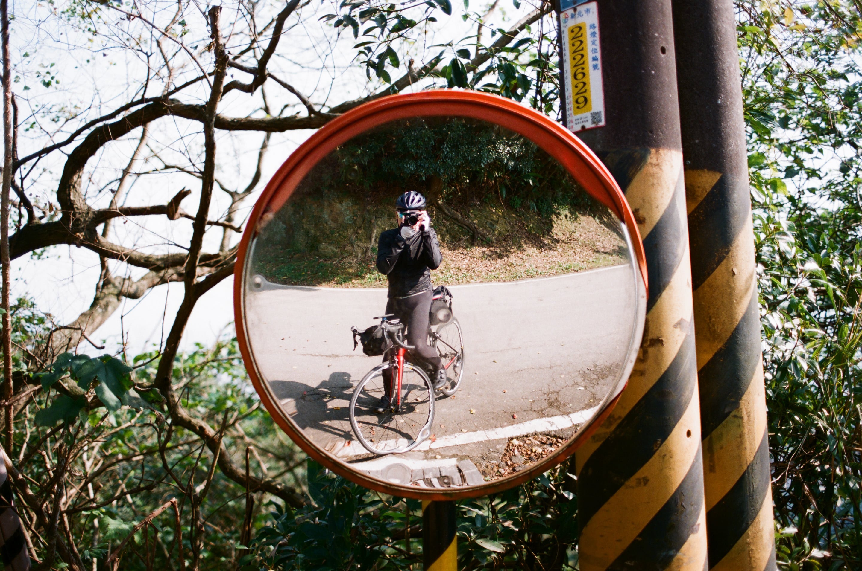 剛從樹林防災降雨雷達站下滑,途中經過了一面反光鏡。Olympus OM 40mm f2(1/1000,f2)