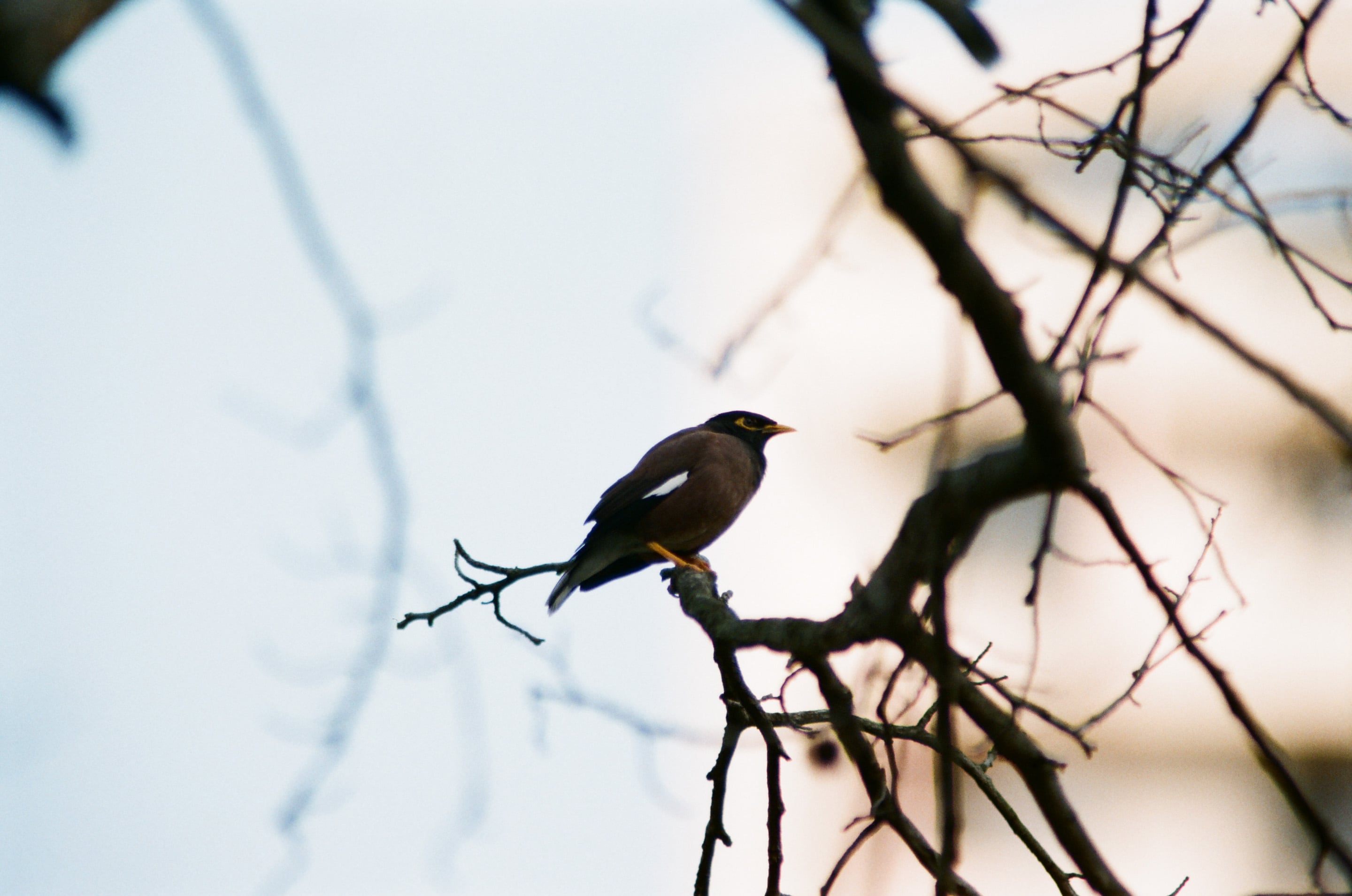 從樹下直接往樹頭上拍家八哥。Tamron SP 300mm f2.8 60B + 1.4x 增距鏡(1/500,f4)