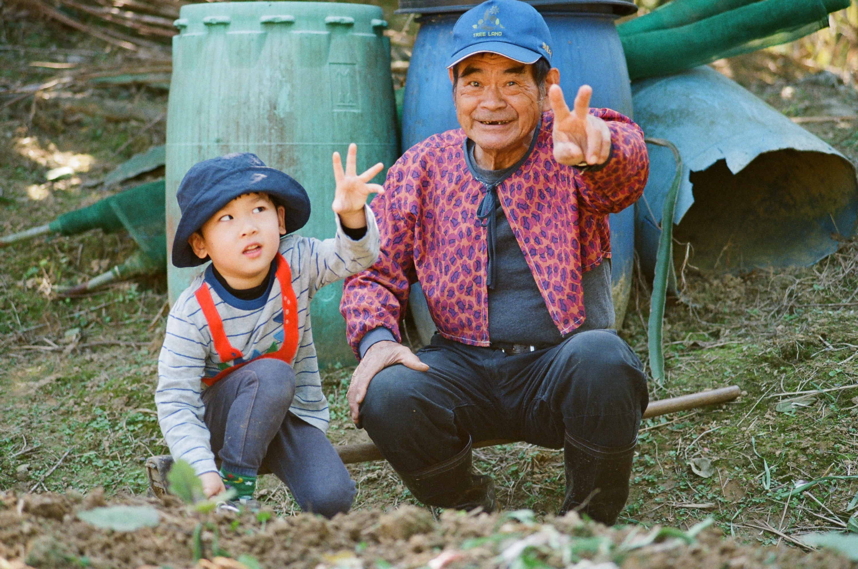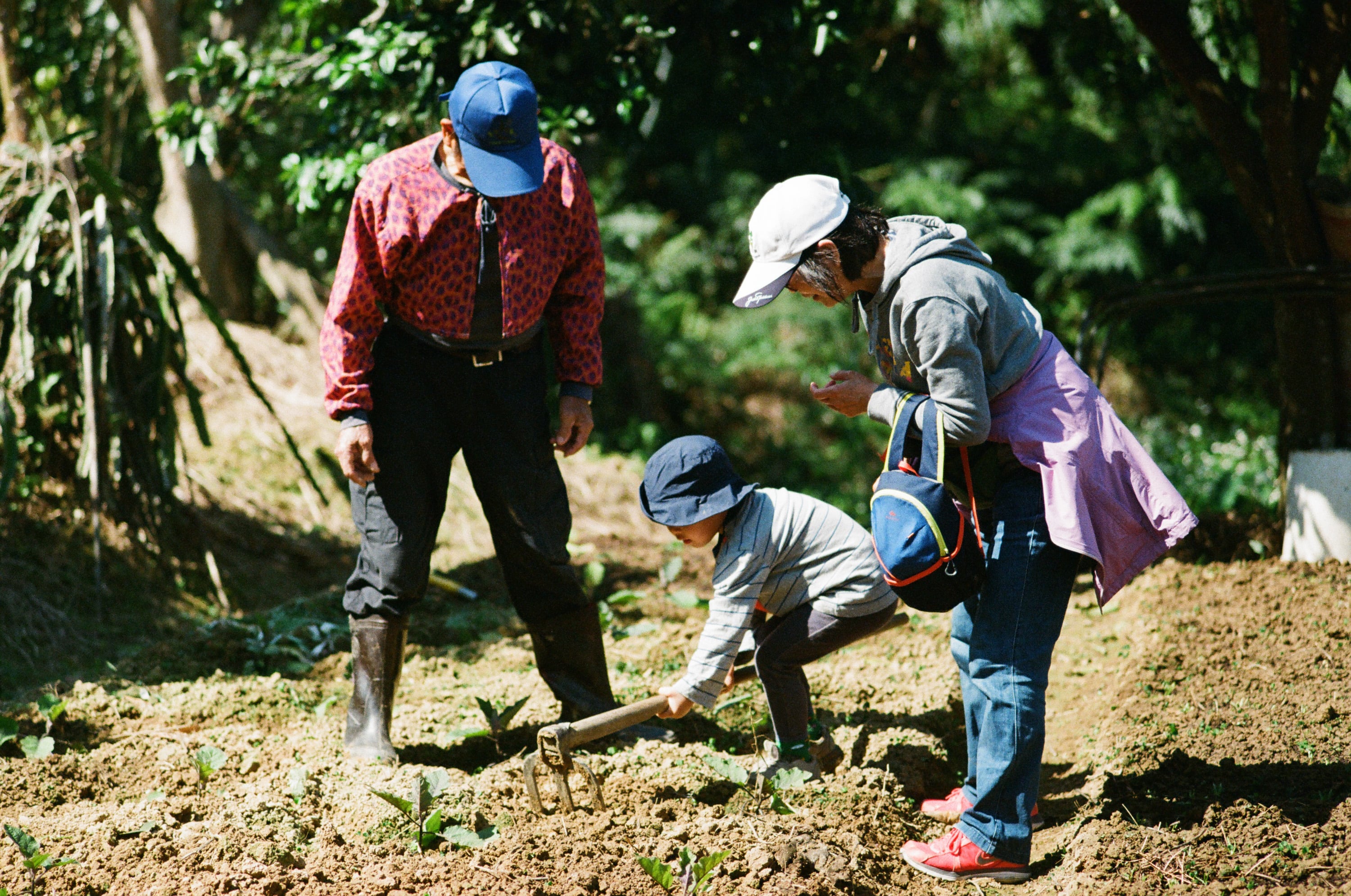 正在菜園鬆土的四歲小孩,左邊是我姑丈(菜園主人),右邊是我媽。