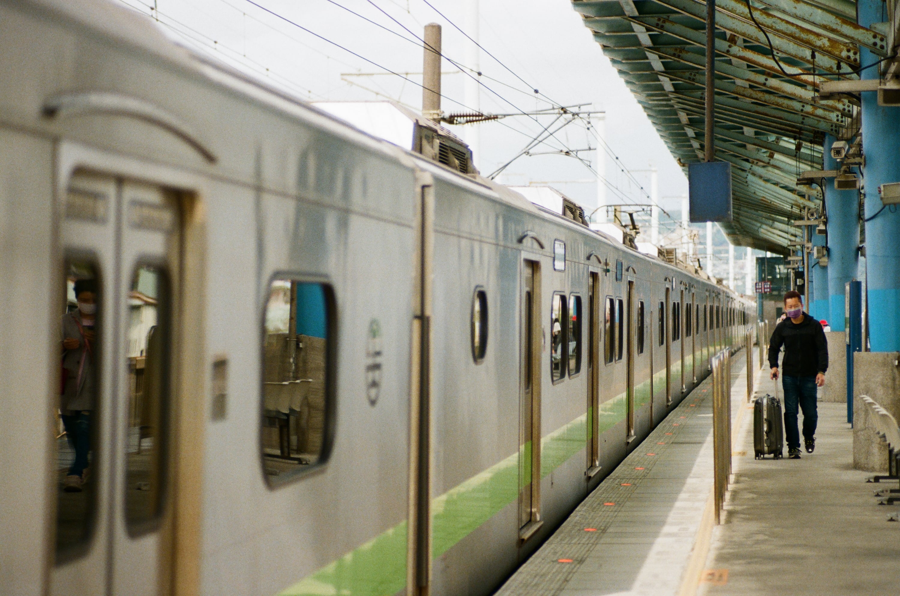 有天星期六,強者我太太補班,依照我們家的慣例,如果遇到兒子週六要補課的情況,我們都會幫兒子請假,這天就是這樣,我帶兒子搭火車,準備去台北車站附近的「東東玩具城」買樂高,順便練習搭乘大眾交通運輸工具,訓練之後要出國的體力。圖為看起來很像被兒子推落月台的父親視角。