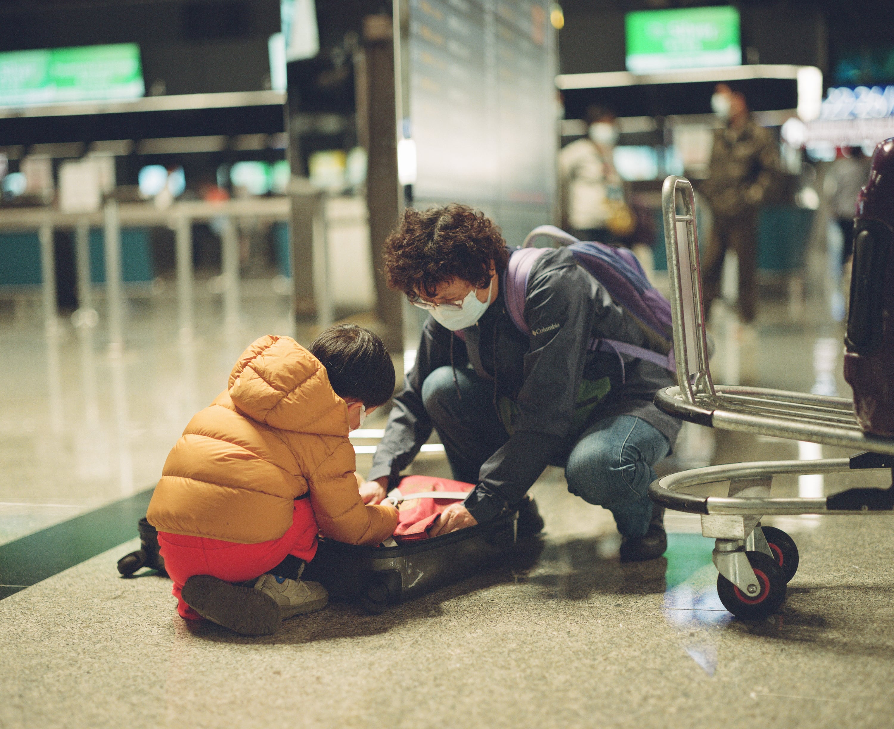 這一天,我媽又要飛去美國了,我可以充分感受到兒子對他阿嬤的捨不得。圖為我媽正在檢查行李,做最後確認,我媽幾乎每次飛行都是這樣謹慎,我身上也遺傳了這種個性。