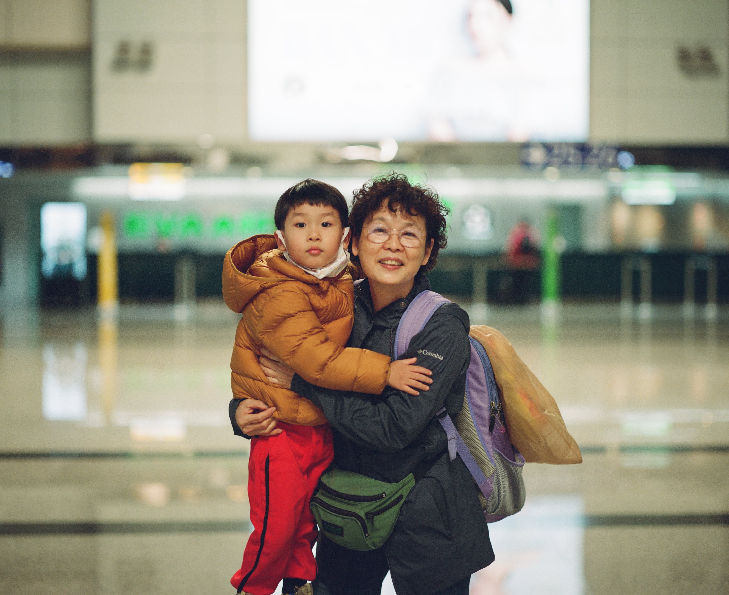 我以中片幅,用最具敬意的方式,裝上最好的鏡頭,紀錄下這張阿嬤與孫子的合照,希望我媽媽旅途一切平安。