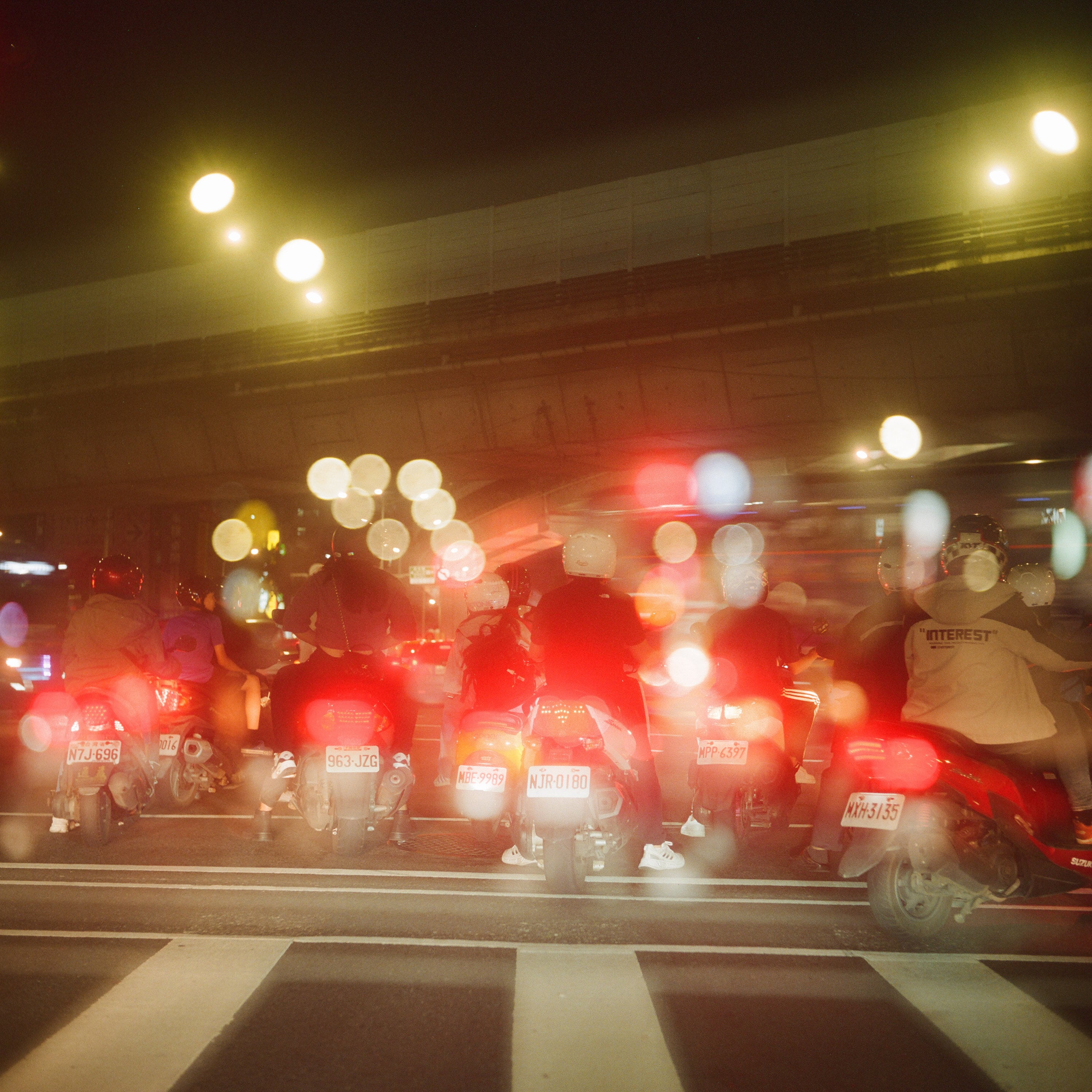 某天晚上騎車在等紅綠燈時,想測試看看自己有沒有辦法手持定位重複曝光。