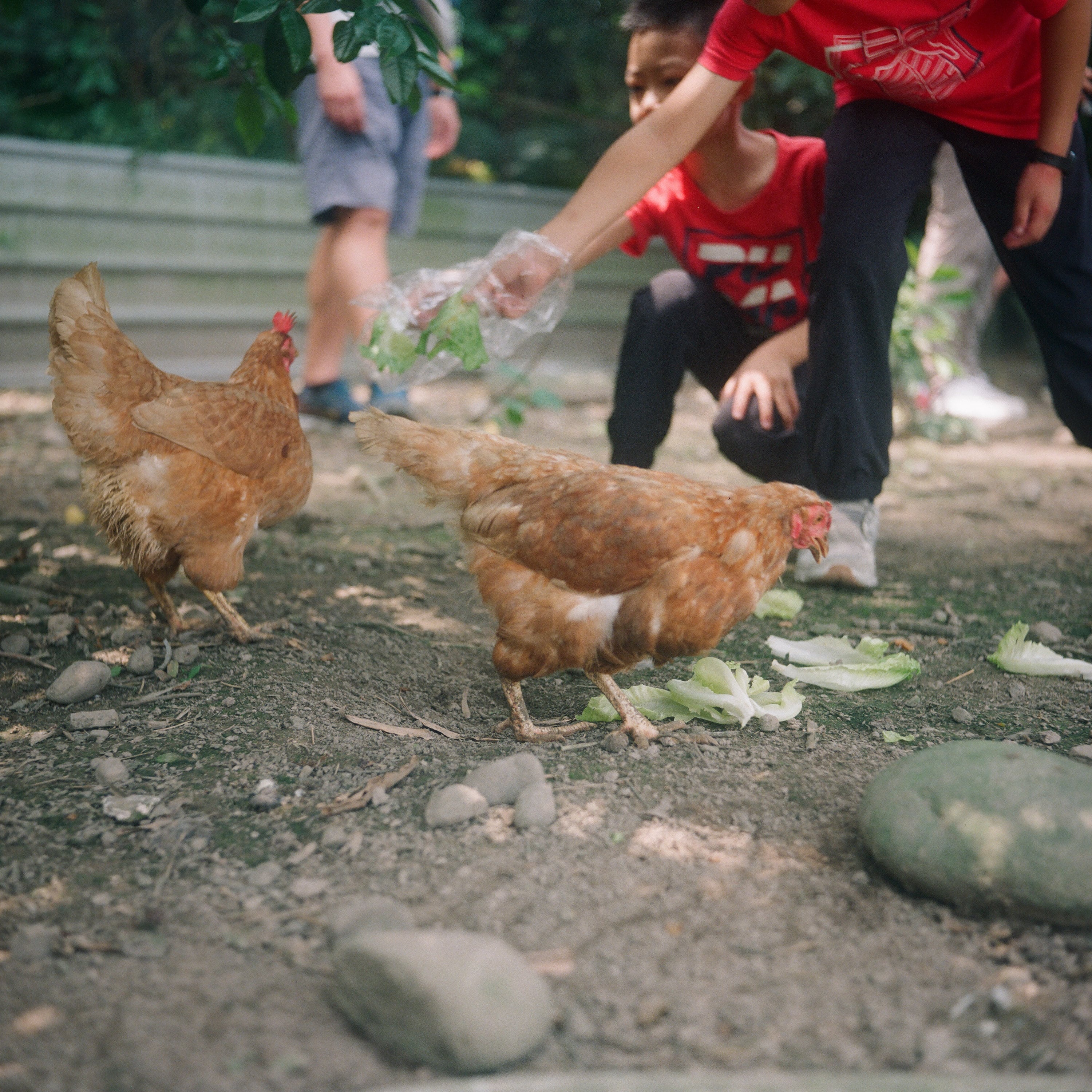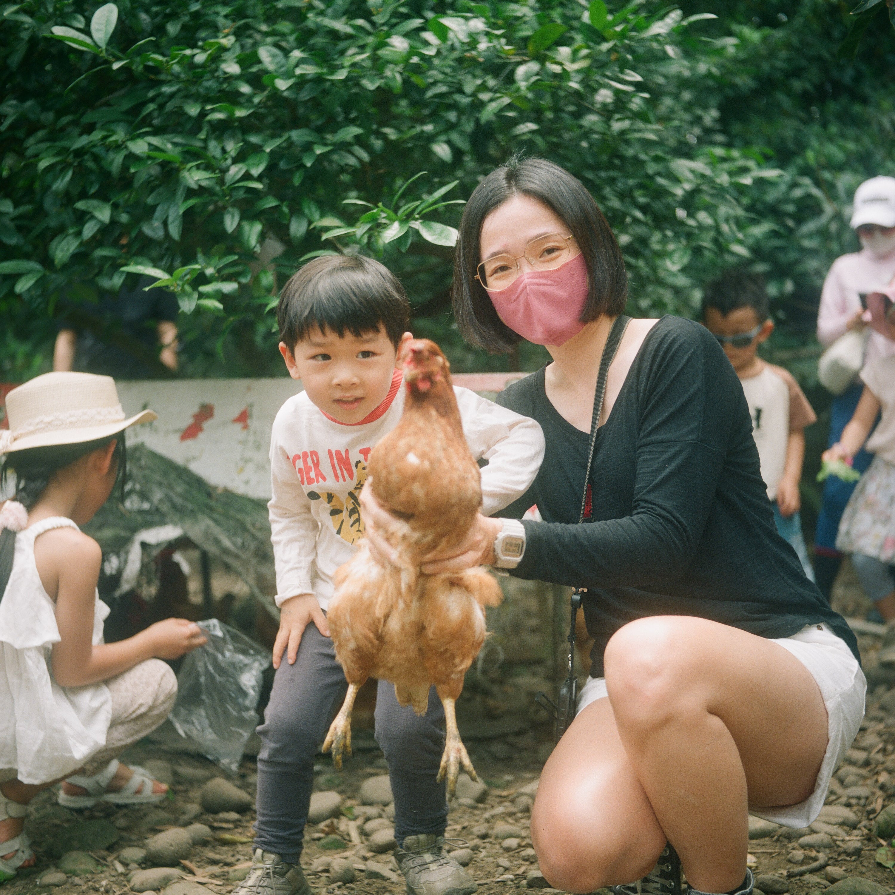 這天兒子學校班級有家長自約的活動,我們去一個農場,剛好有個環節是要餵雞,我這輩子第一次進雞舍餵雞,看到雞在身旁跑來跑去還滿有趣的。