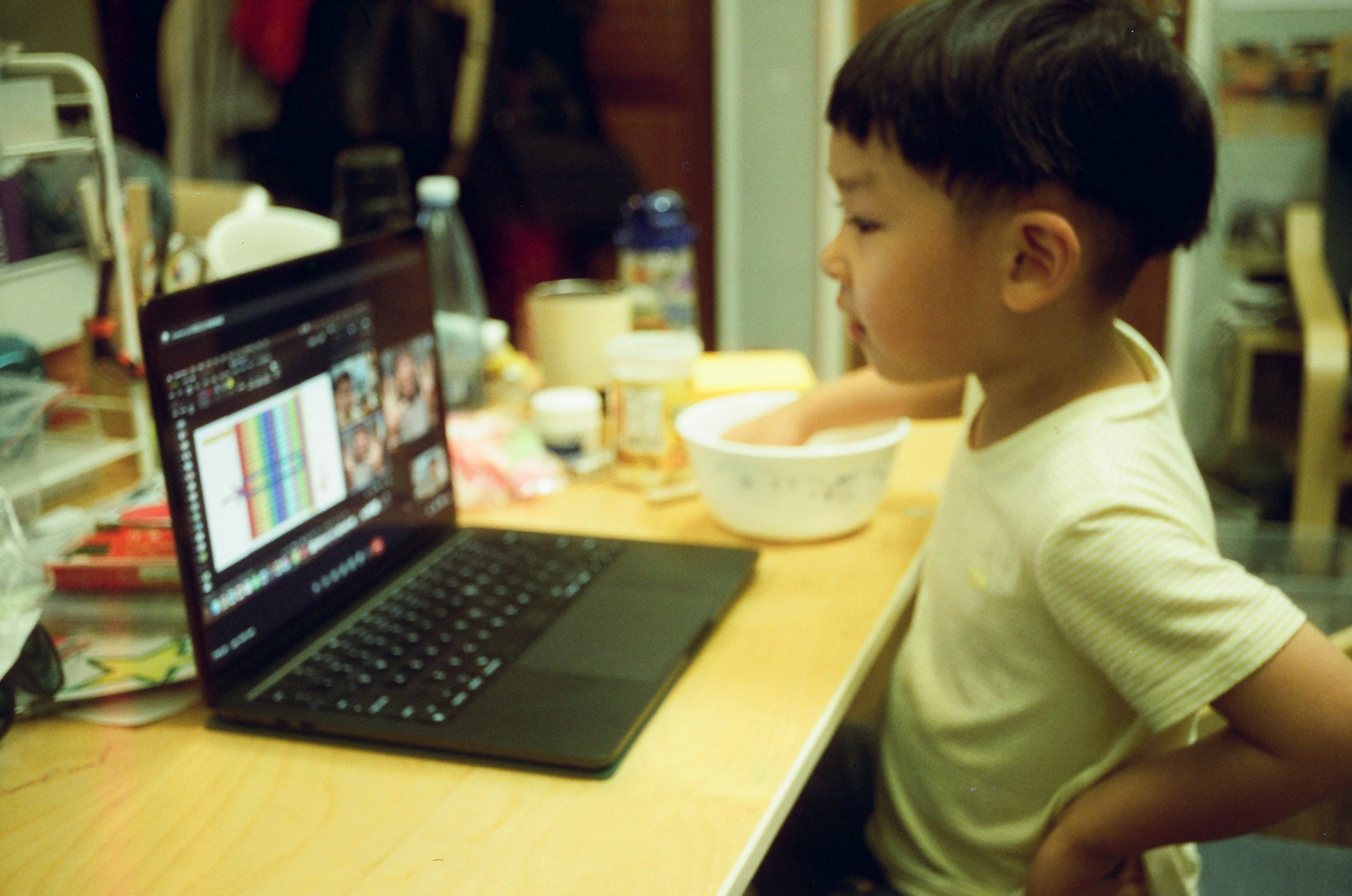 兒子正在上視訊課,我這天不小心讓兒子一邊上課一邊吃東西,結果導致兒子上課時非常不專心,對老師不太好意思。