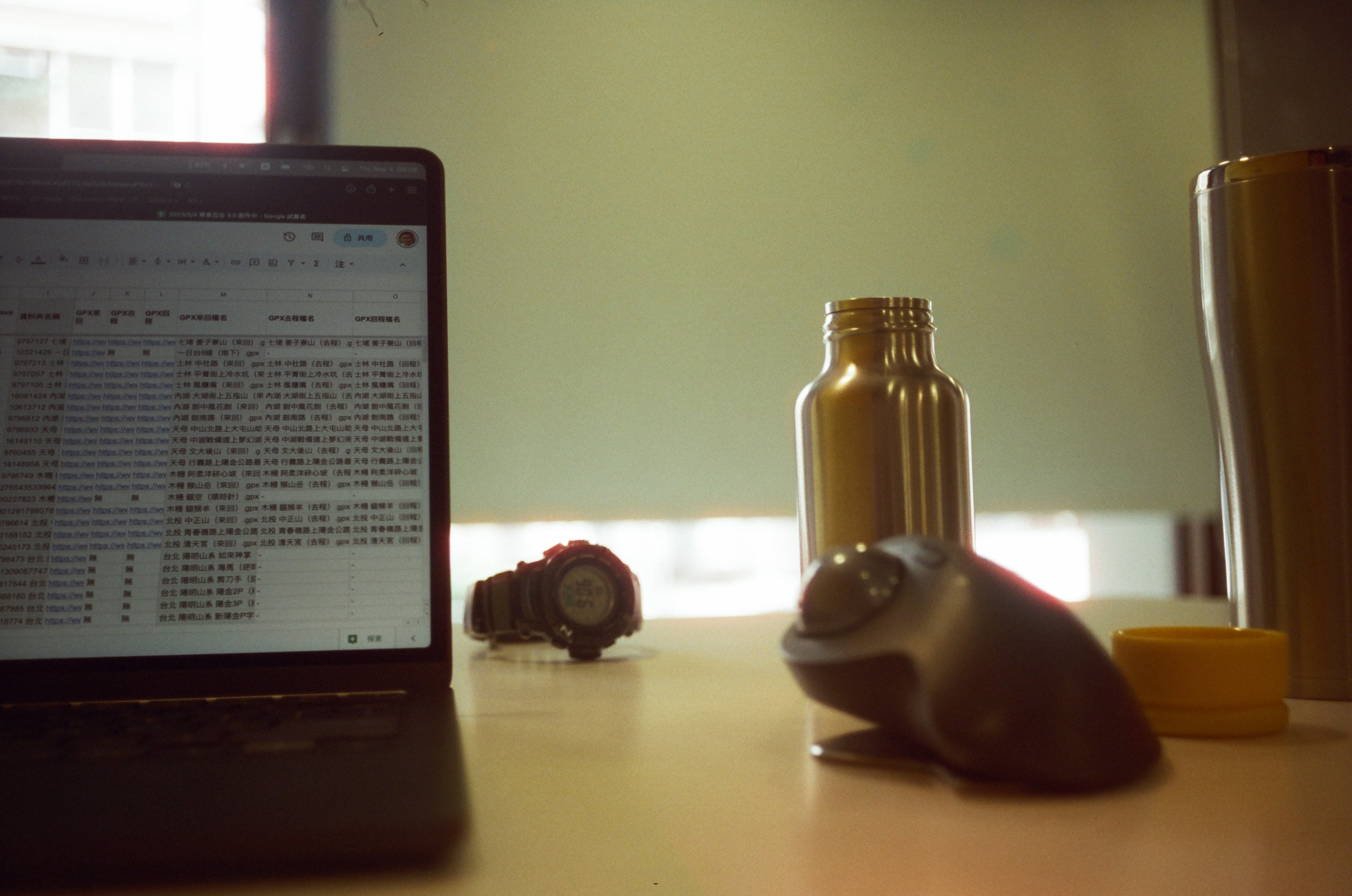 最近將工作地點從新莊麗來對面的摩斯,改成在兒子幼兒園附近的摩斯,圖為今天配戴的手錶,還在練估焦,我想我對到電腦螢幕去了。