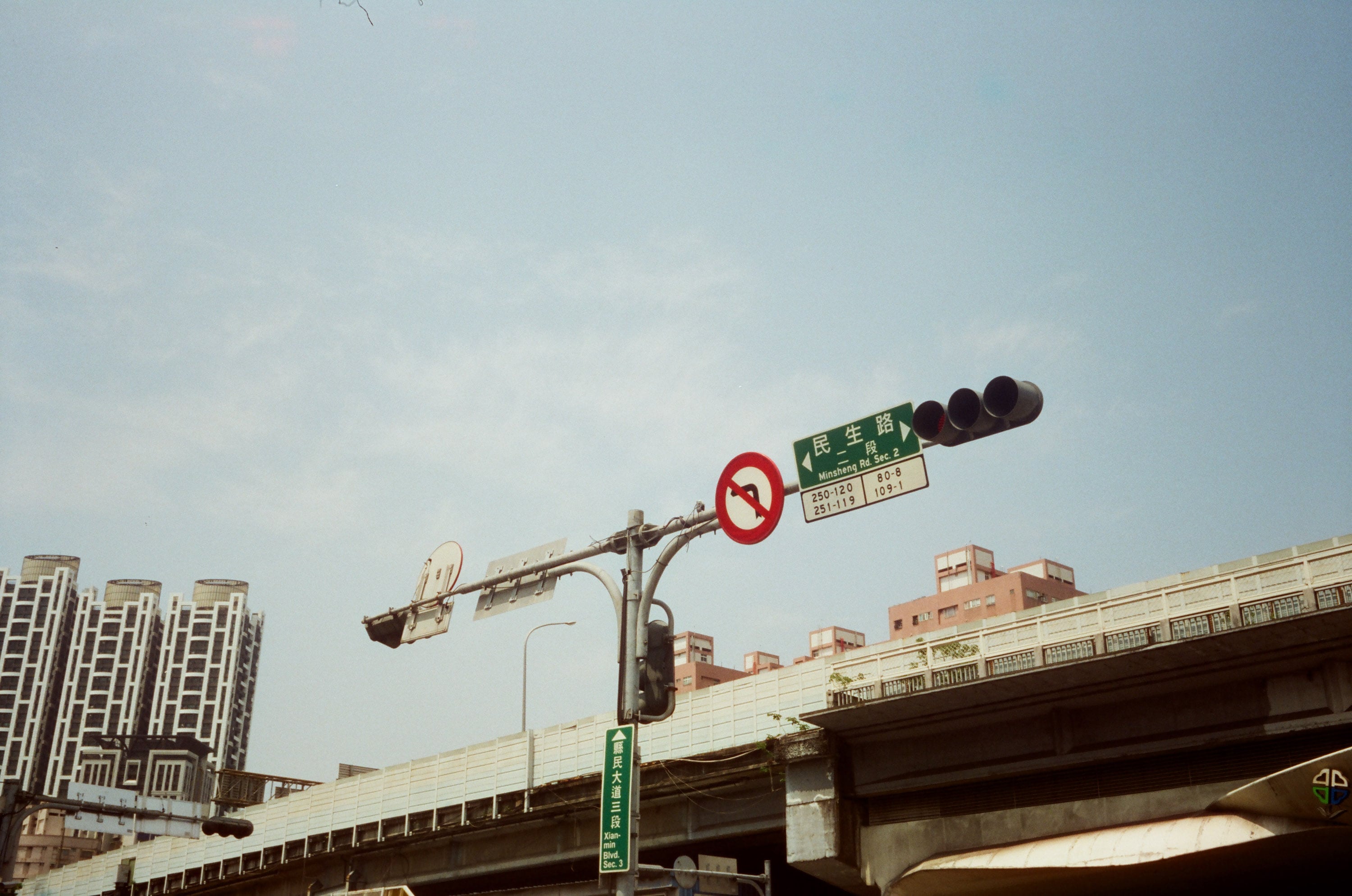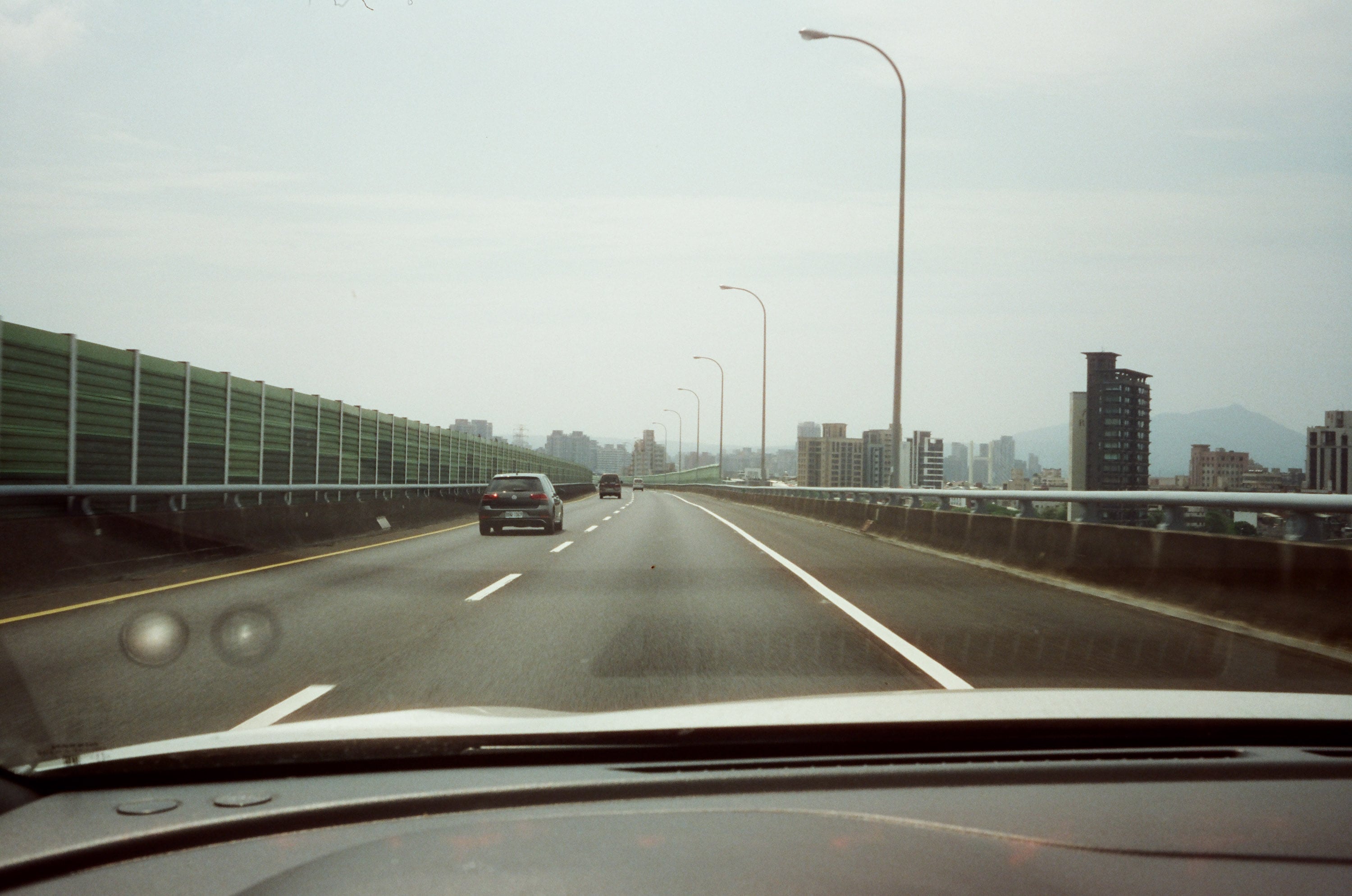 這卷底片所使用的相機是發表自 1955 年的 Olympus Wide 估焦相機,採用 35mm f3.5 鏡頭,跟 Olympus Flex 雙眼相機屬於同一個時期的產品,那時相機設計大師米谷美久先生應該還沒有進入 Olympus 工作。這是我第一次使用估焦相機,覺得真的是很有挑戰性,在本人「視線測距」技術尚未成熟之前,只能盡可能拍一些適合無限遠對焦的場景,例如筆直公路上的遠景就是我覺得很適合的題材,而且在拍攝時你還可以直接省略看進觀景窗的這個動作,舉起相機直接盲拍,用比較沒有壓力的方式記錄看看生活。