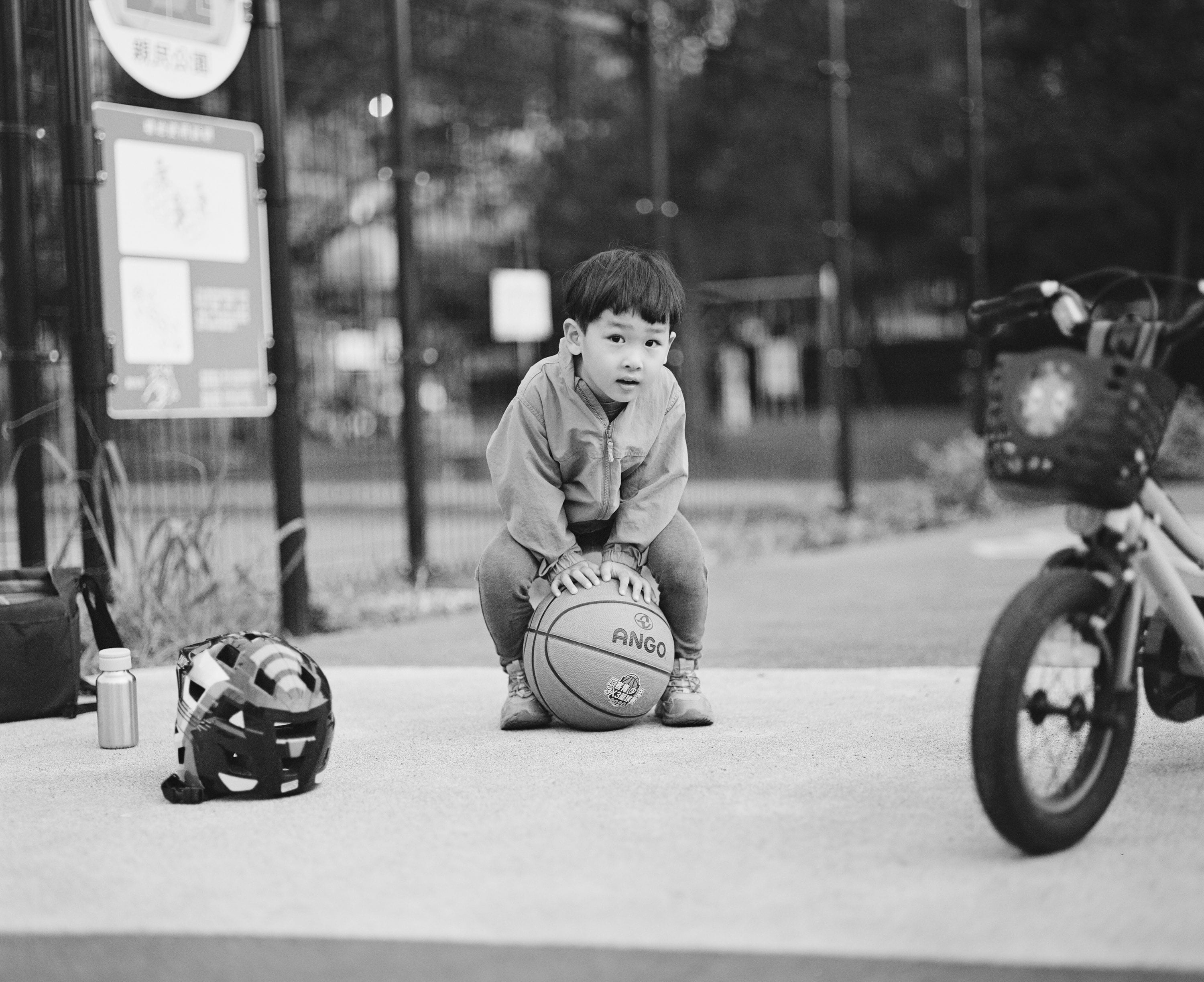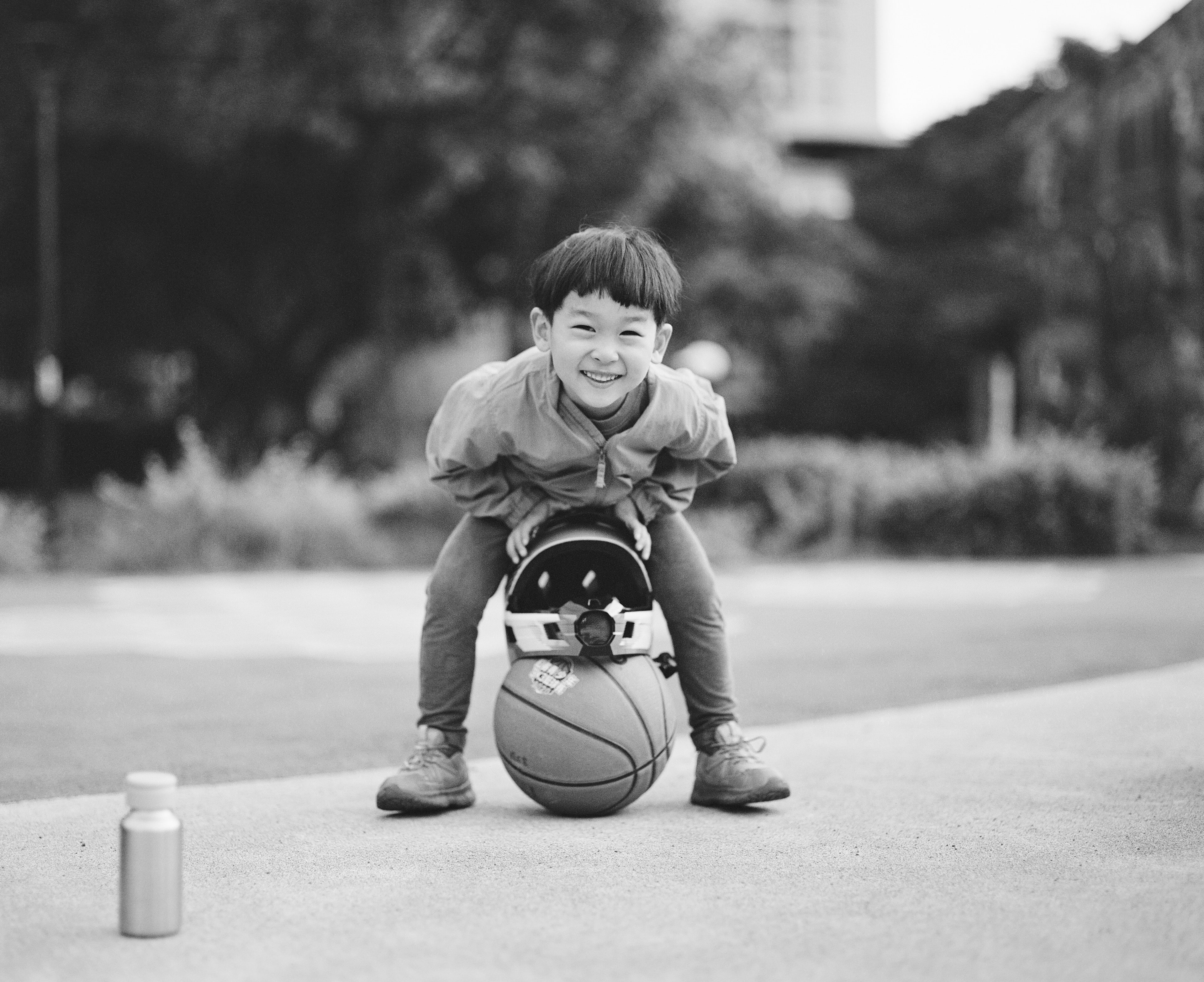 在玩球的我們,玩到一半我覺得那顆籃球擺在那邊很好看,我就跟兒子說暫停,讓我拍一下照片!