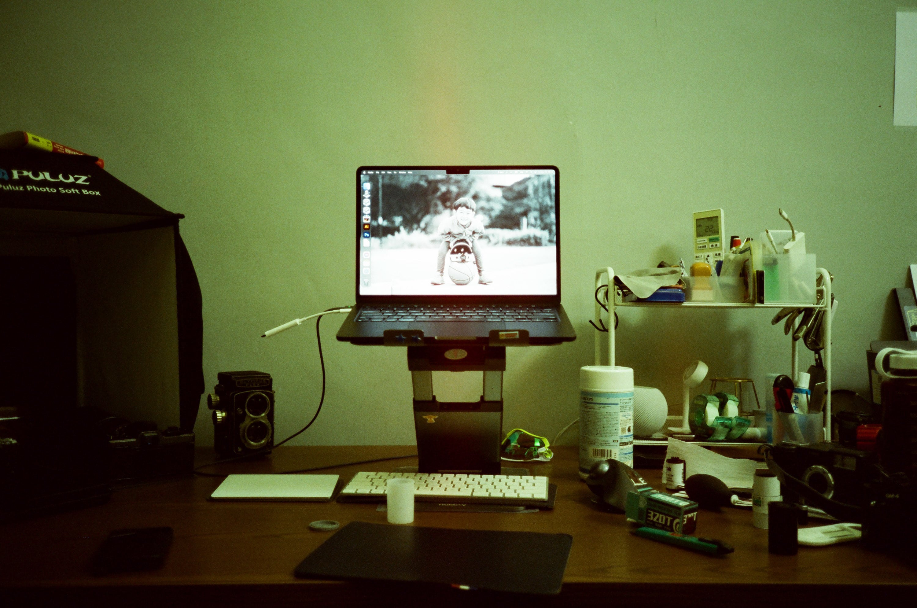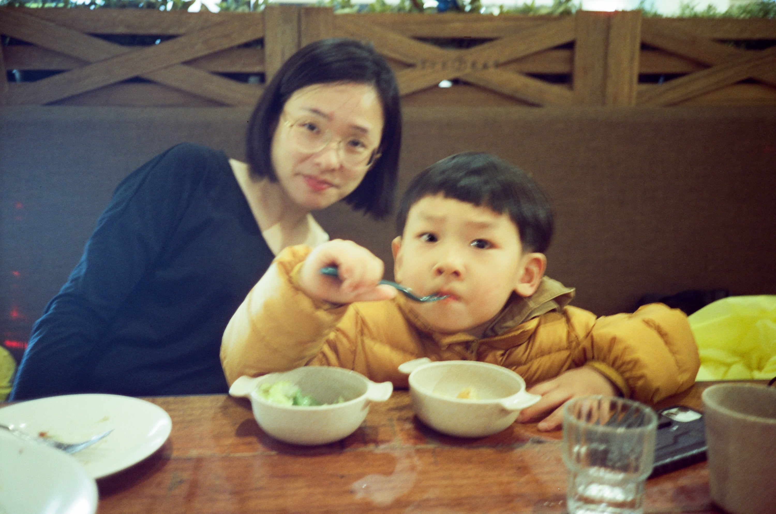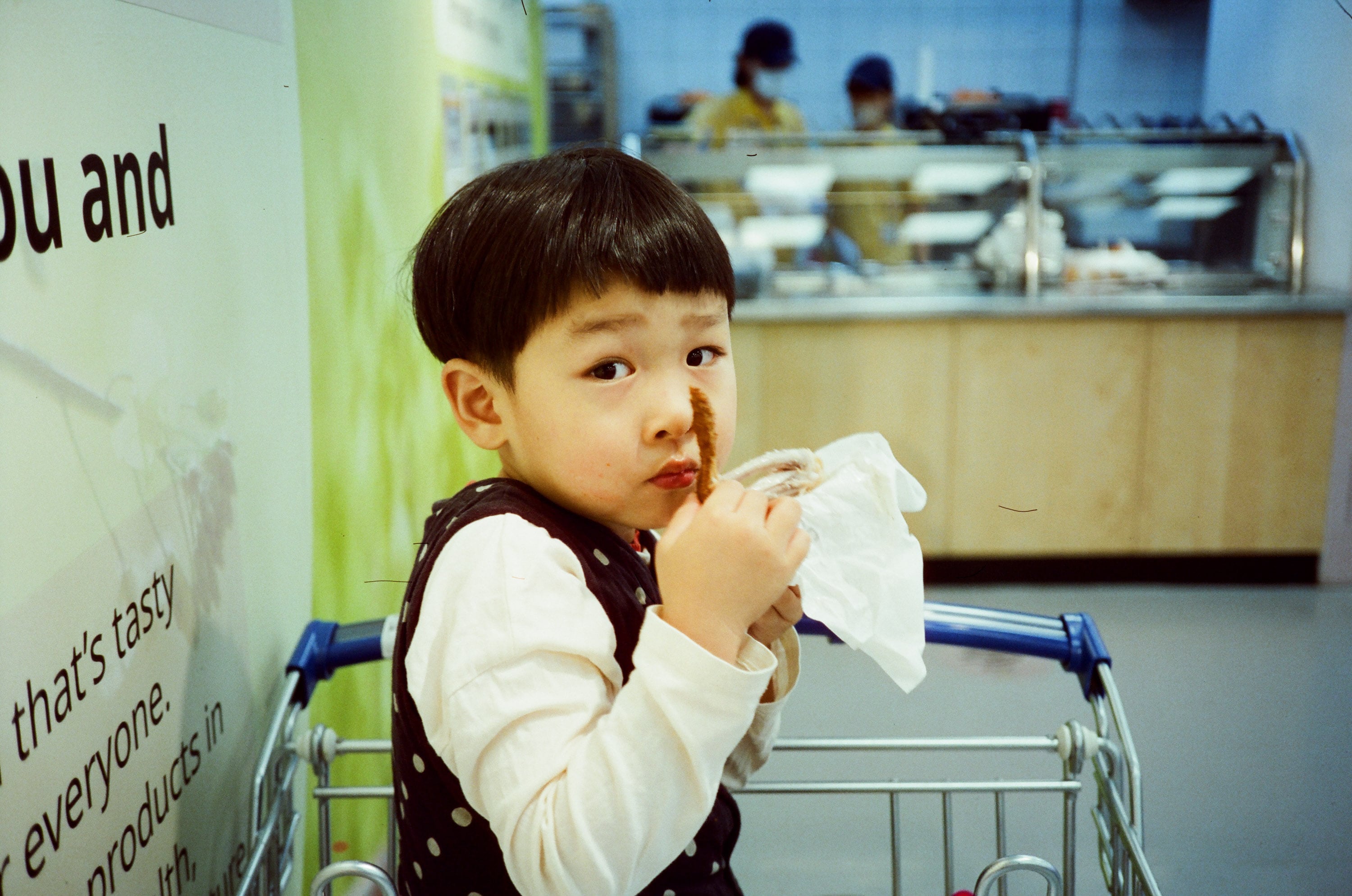最近的桌布,用 Pentax 6x7 MLU 搭配 Takumar 105mm f2.4 使用 Ilford XP2 Super 400 所拍攝的一張兒子的照片。