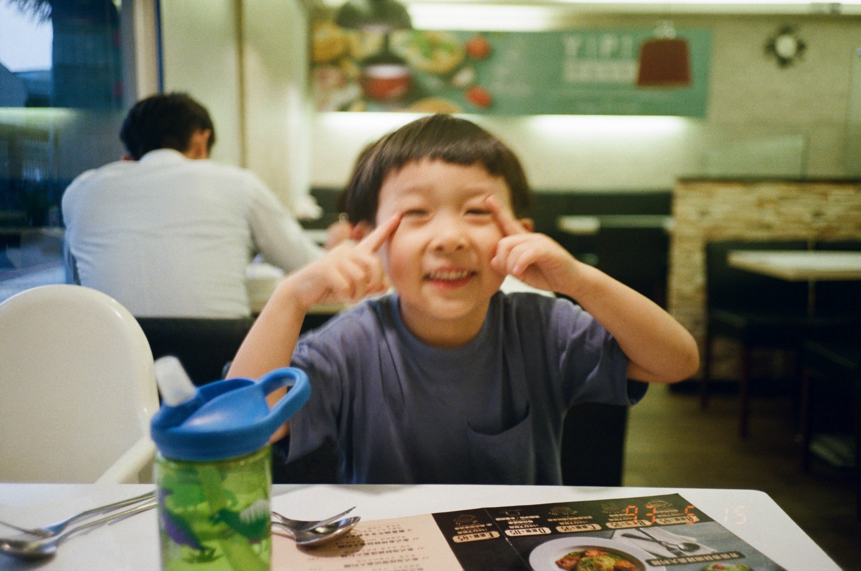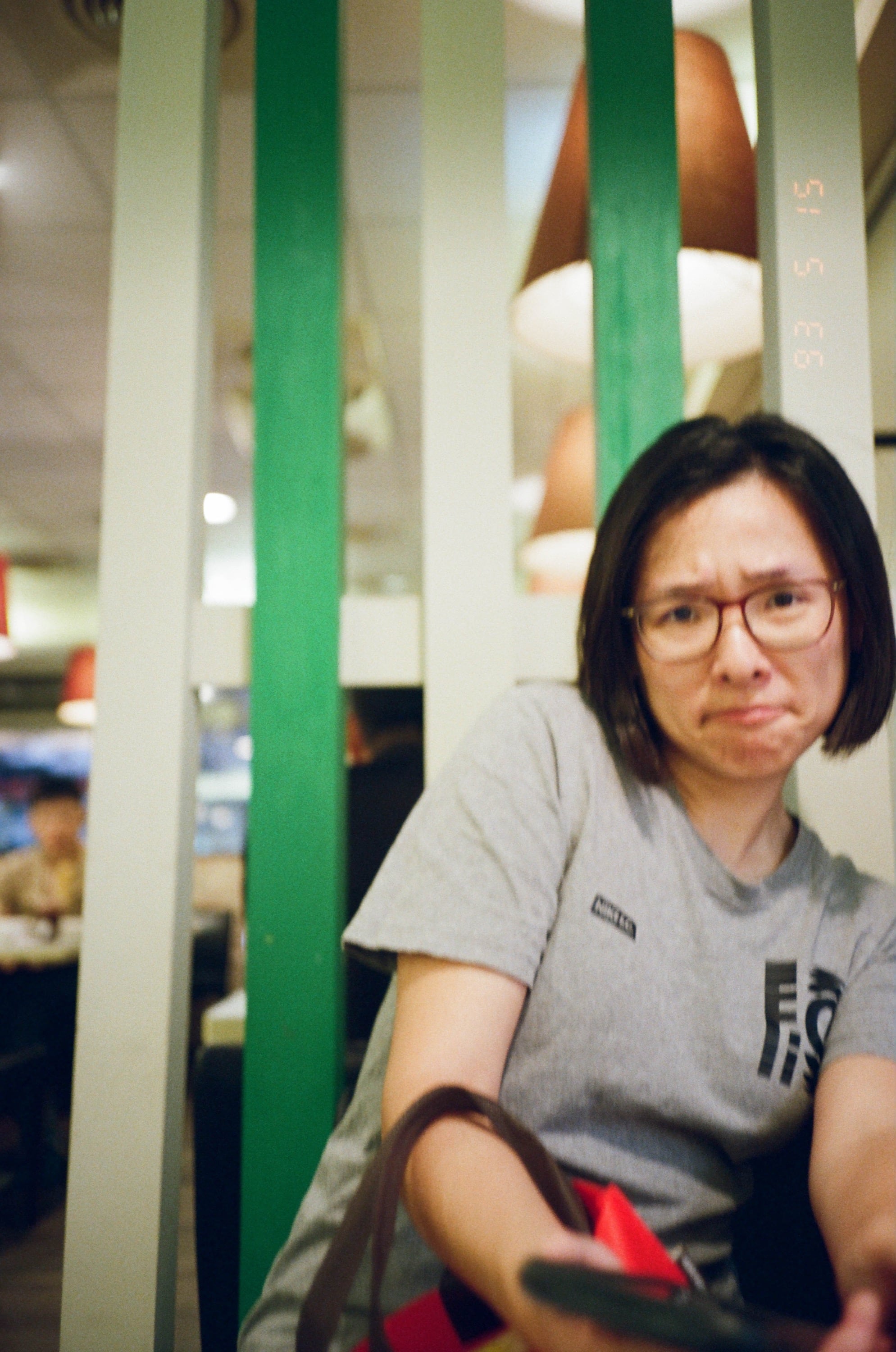 兒子拿著這台相機,用類似於半格相機的構圖,拍下了強者我太太和我的合照。這是第一張強者我太太。