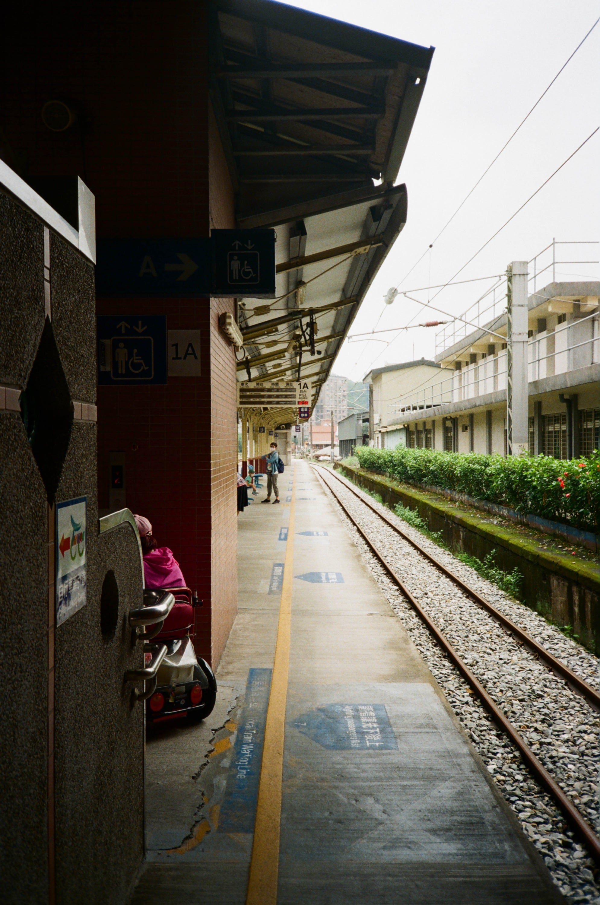 正在火車月台的我們,順便測試一下 Pentax PC-555 Date 的散景,空間感不錯啦,比手機好,這感覺手機是拍不出來。