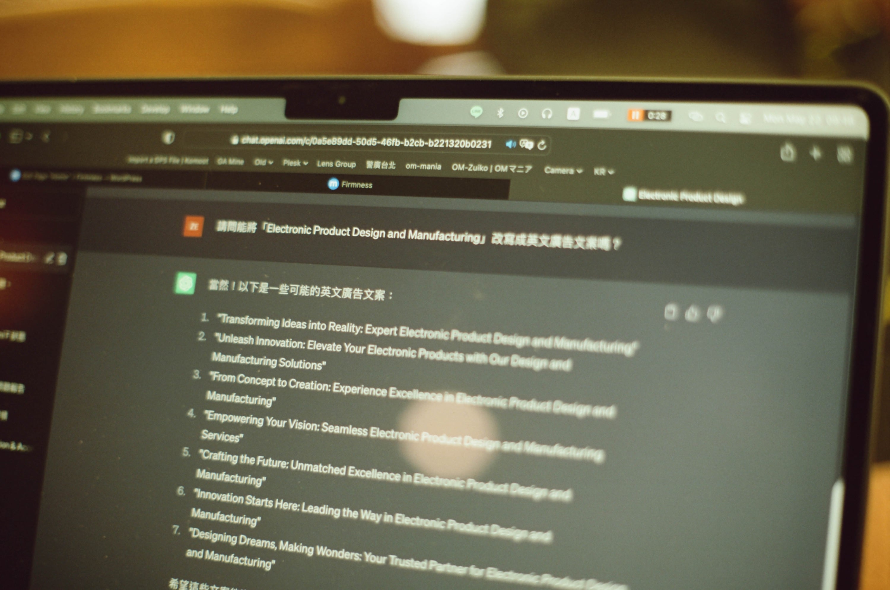 最近開始使用 ChatGPT 在工作上,我的主要用途是用來順客戶提供的中翻英文案,或是我自己幫客戶做的翻譯,AI 真的是推進人類進步的巨大力量。