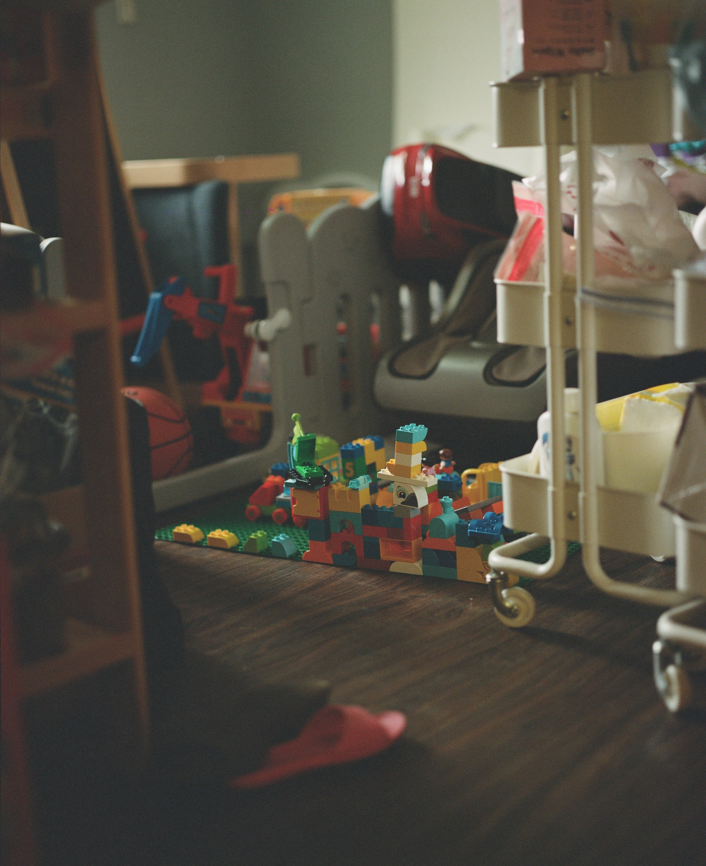 這是這卷底片中我最喜歡的一張照片,兒子在如同廢墟的玩具堆中行走,紀念某天這位父親在家帶小孩時的一個日常場景。只可惜這張照片漏光了,因為當初這卷底片是從一台壞到的機身中取下的,在取下重裝的過程中有不慎吸收到外面的光線。