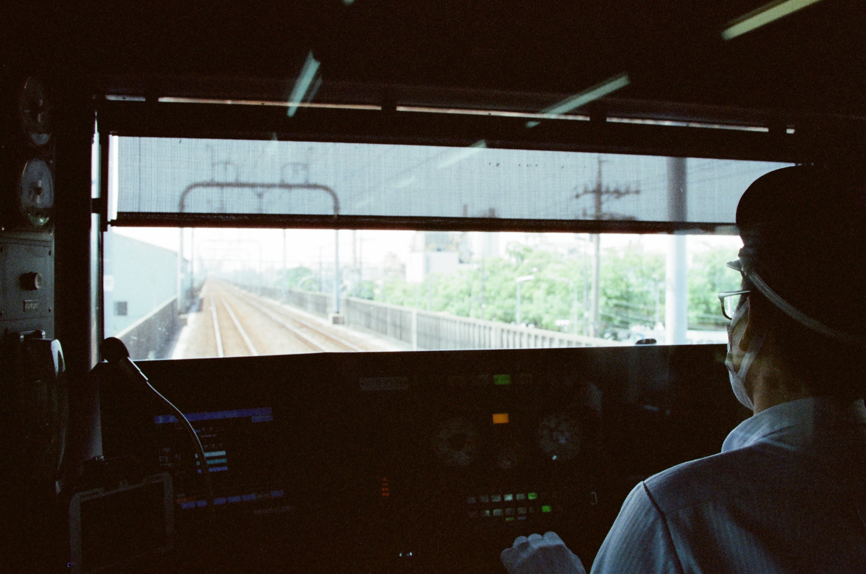 畫面中可以看到遠方有個綠色燈號,列車駕駛員只要看到燈號,都會比一個手勢進行確認(用手指一下),很有趣,好像在說「我看到你了喔!」
