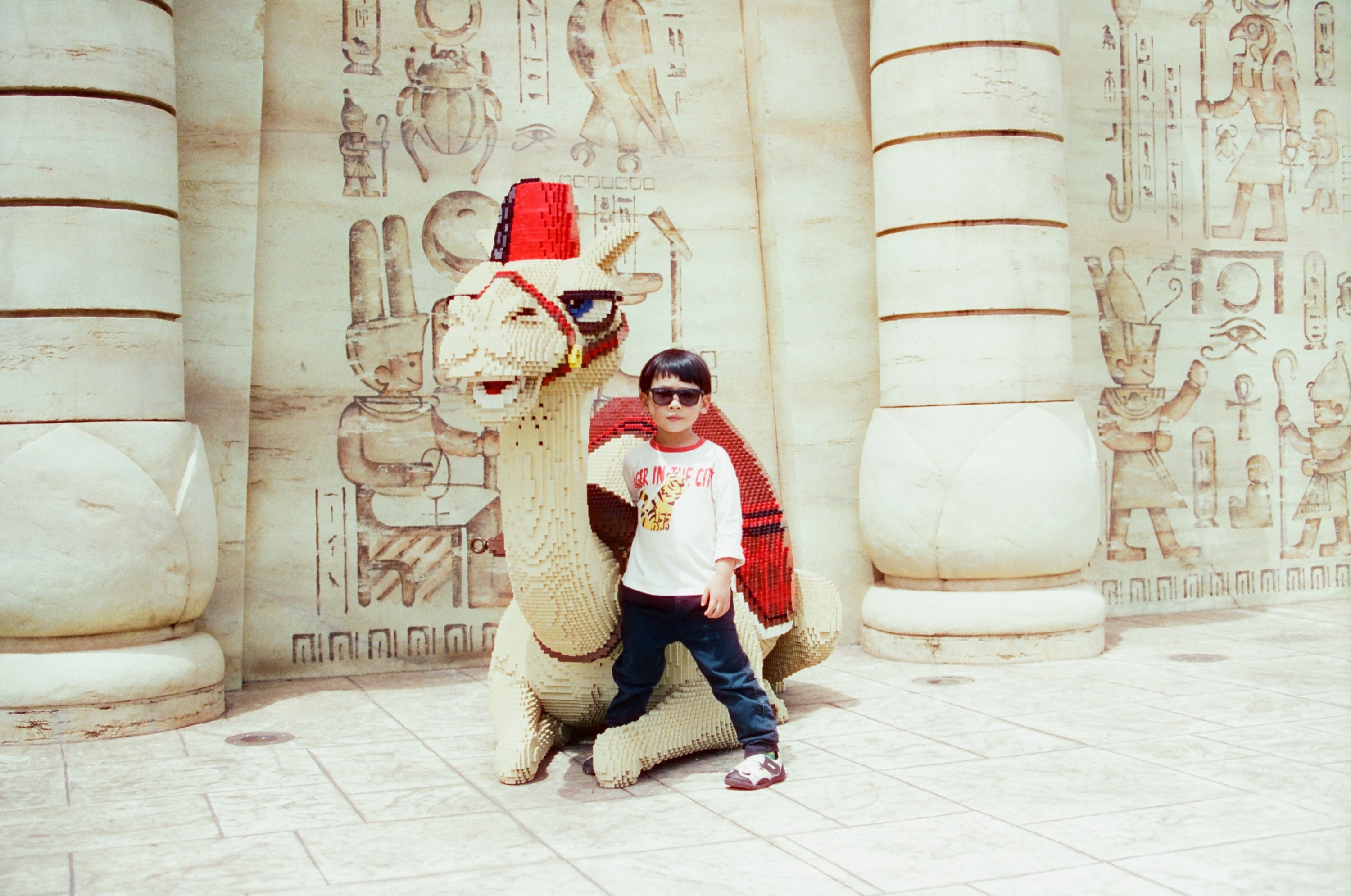 時間快轉到樂高樂園裡面,從兒子的頭髮可以看到當天的天氣頗熱。