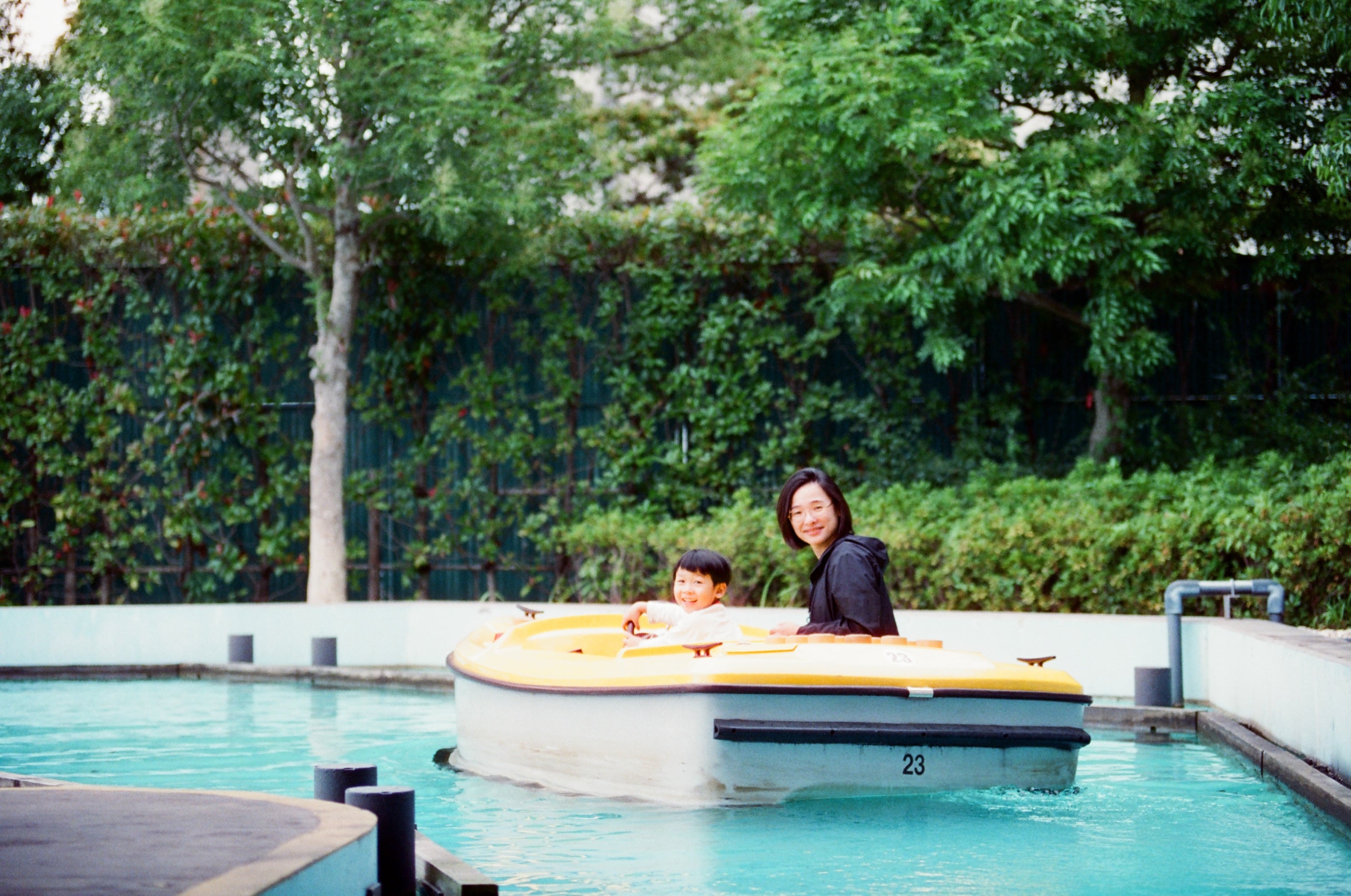 這是我們玩的最後一個遊樂設施,原本兒子說不敢玩的,但坐上去之後很喜歡,因為可以自己開船!