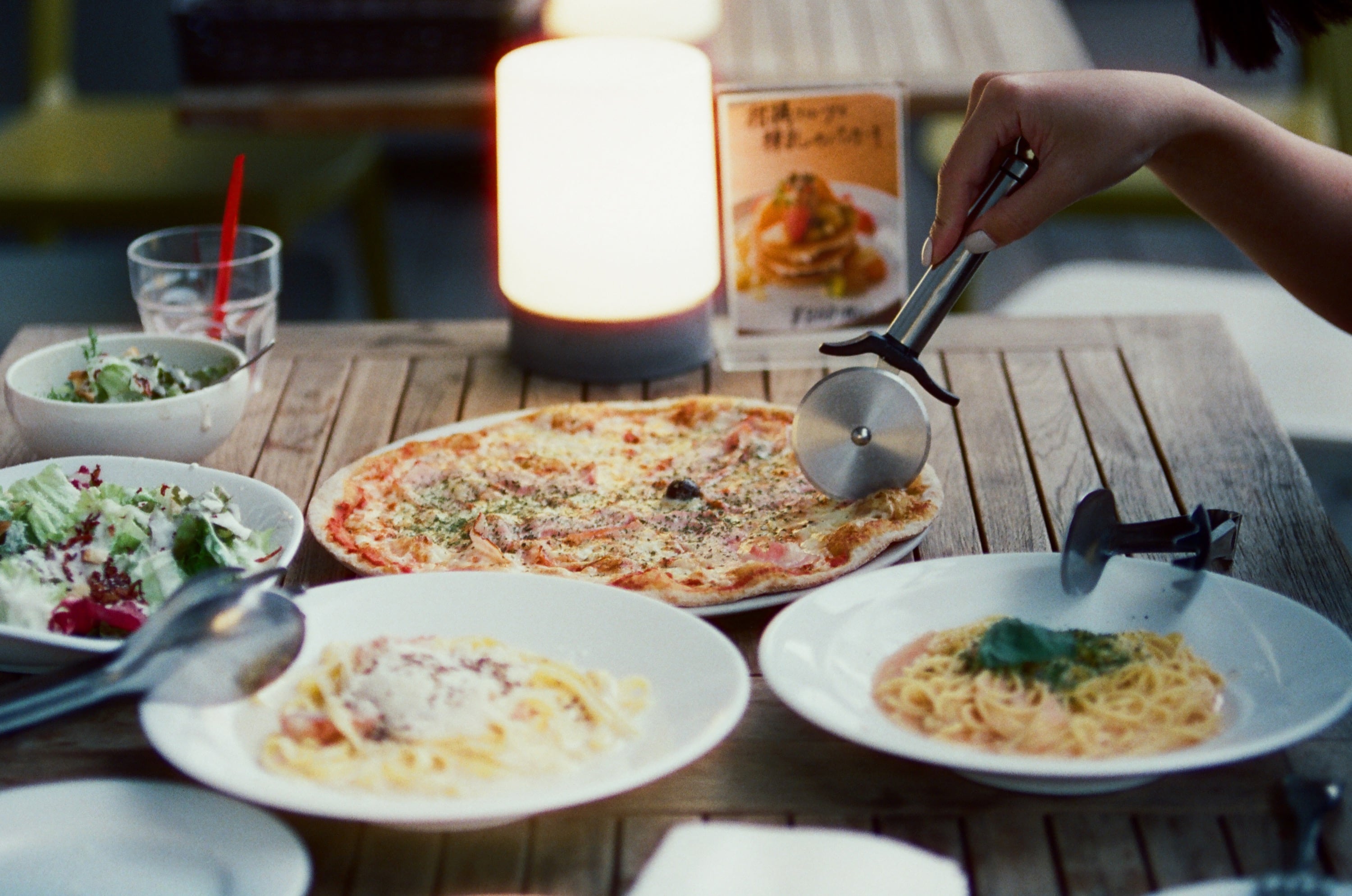 第一次吃到這種烤好讓你自己切大小的披薩,滿方便的說,但重點是很好吃,隨便點都好吃。