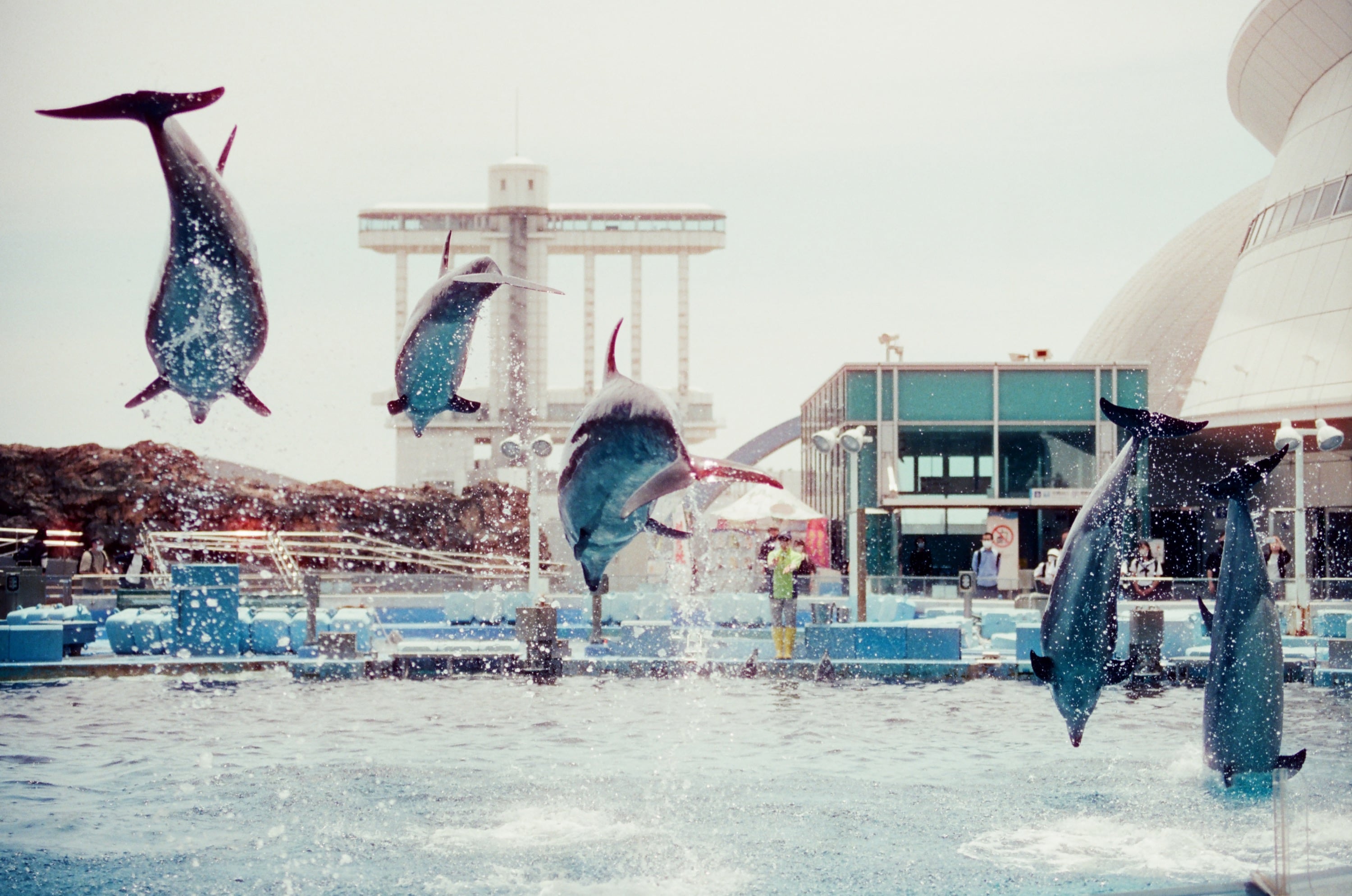 因此,這次去名古屋,某個程度也算是衝著水族館表演而去的吧!因此相機拍了許多「海豚追焦照」,當然,有成功,也有失敗,一切都是拍照的樂趣。這卷底片算是我們去名古屋水族館的上卷,因為看完一場海豚表演之後,底片也差不多拍完了,下一卷有另一些關於名古屋水族館的照片。