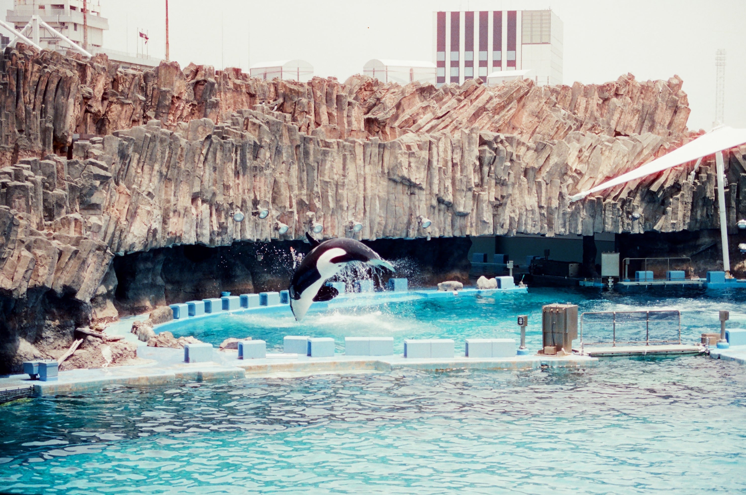 表演池後方的小池,虎鯨訓練中。如果是用 200mm 的鏡頭,應該可以更清楚。