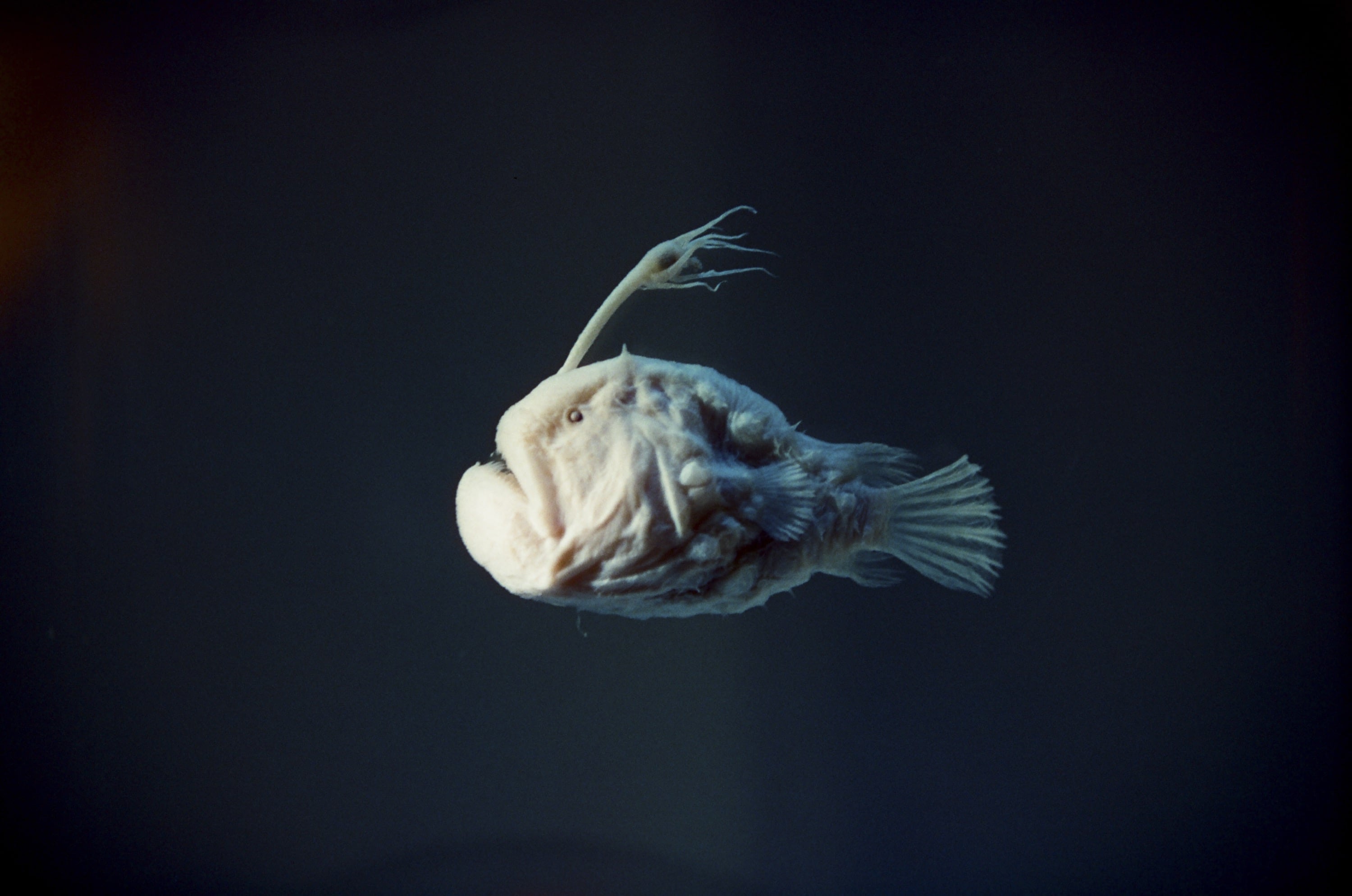 這是固定在那邊的標本喔!鮟鱇魚,我小時候也很愛,覺得牠的造型設定超酷,日本在製作這類標本的姿態還原能力真的很強。